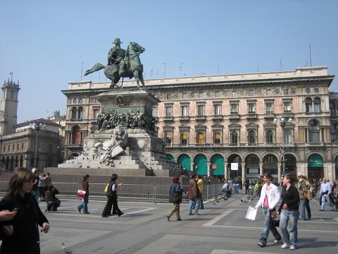 ミラノの、ドゥオモ広場に立つ銅像。ドゥオモという大建築の前では小さく感じてしまいますが、やっぱり「単品」として(?)見ると、大きくて、立派ですで、この銅像ですが、誰の像だかもちろん、ご存知ですよね?・・・・・そう、イタリア共和国初代国王、ヴィットリオ・エマヌエーレ2世サン。ガッレリアもそうだし、通りの名前にもなっているので、なんとなく想像もつくのですが、本当にそうだって知ったの、実は最近な私(苦笑)待ち合わせをしていて、「今ドコ?」なんて電話で話すときには「ヴィットリオの前にいるから」なんて言ったりしても、ガッレリアなのか通りなのか、はたまた銅像の前なのか、わからないですよね~。フツウなら、彼の足元の石段に腰掛ける人が沢山いそうなのに、ふと気づくとこんなバリケード(?)に囲まれてしまって、ちょっと淋しそうでした(笑)