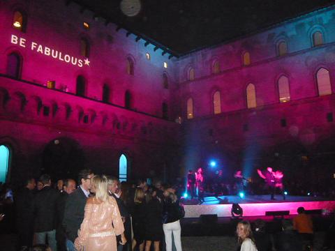 今日は、今回とっても印象的だったパーティイベントを紹介します☆ 場所は、ミラノのもうひとつのシンボル、スフォルツァ城。夜のスフォルツァ城を貸し切っての一大イヴェントですミラノコレクションの時期は世界中から注目され、またセレブたちが集まるミラノ。それだけに夜毎のイベントには事欠きません昼間は展示会などで忙しく、そして夕方からはイベントスケジュールも目白押し、ということで楽しみがつきないのであります♪私たちも、夕方まで展示会会場に居て、夕方カステッロの裏手のセンピオーネ公園をデート気分で歩きながらお城の入り口までやってきました。・・・すると・・・ いつものようにライトアップされた城門に、『BE ☆ FABULOUS』というメッセージが投影されいます。そしてお城の中からはかすかに音楽も聞こえてきていました。BE FABULOUS・・・そう、この日はここであのMOET & CHANDONがパーティを開いていたのですもちろん、モエの招待客オンリーのクローズド・パーティだったのですが、たまたま私達の友人であるマッシモ君の紹介で、このステキな一夜に参加することが出来てしまいましたさすがイタリア、友達は大事にしたいものです(笑) マッシモ君の名前が堅固な城門をくぐり抜ける鍵となり、私たちもいざ、夢と魔法の王国へ~☆・・・城門から、広い中庭を通り抜けて行くアプローチはキャンドルで足元が照らされ、右手中央にはグランドピアノが。パーティ会場に入る途中から、ピアノの生演奏とキャンドルで雰囲気を盛り上げてくれるのです♪ キラキラと輝く舞台にはスポットライトが当てられ、これまたキラキラの衣装に身を包んだピアニストがエレガントに指を躍らせています。。う~ん、ステキ!ココまででもすっかり気分はシンデレラです(笑) ・・・私がイケメン(!)ピアニストに心を奪われている間、彼とマッシモ君はコチラのお嬢さんに目がクギヅケ~(笑) まったく、油断もスキもアリマセン(お互いに!)なんといっても、モエ主催ですから、もちろんシャンパーニュパーティですヨ!広大なセンピオーネ公園から歩いてきた私たち、のども渇いてきました。いよいよ、パーティ会場へ入ります♪ こちらが会場の入り口。いよいよ MOET & CHANDON の名前が見えてきました・・・って、イイところなんですが、今日はココまで~(笑)お楽しみは、明日へ続きます♪