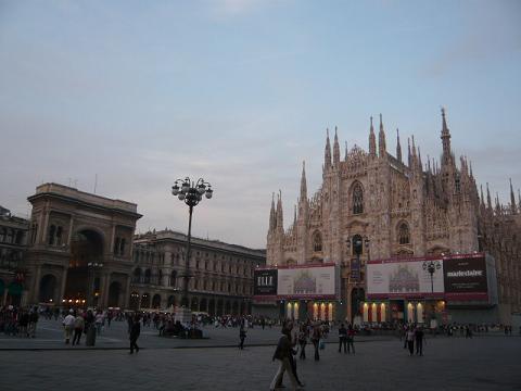 ある日の夕方、ドゥオモ広場にて。ドゥオモのお色直し工事も、正面に取り掛かってからはや4年目。少しずつですが着実に進んでいます。半年前に比べると、養生部分が大分少なくなってきていますネ♪ もともとピンク色がかった大理石で作られたドゥオモですが、昼間は日光で白く輝いてみえます。でも、夕暮れ時にはこんなキレイなピンク色に。いよいよお色直しも大詰めとなった感がありますが、養生部分に今までの工事の履歴やドゥオモの歴史などがパネル展示されていて、興味深く見ることができます。 コチラでは、今までの工事を年毎に色分けして説明。黄色が2004年、緑が2005年、紫が2006年で、ローズ色が今年の作業部分。・・・ってことは、残りのグレイの部分は来年、ってことなんでしょうかね~。ドゥオモ5ヵ年計画、っていうことなのかもしれませんね。 ばら色に染まるドゥオモは宵のひと時だけ。日が暮れて空が群青色になると、ライトアップされてハチミツ色に変わってゆくのです。夕暮れのドゥオモはいわば貴重な瞬間かもしれません♪お色直し工事が終わって、全体が夕日に染まるところもまた、楽しみの一つですネ☆半年前のドゥオモ、正面の写真はコチラから。
