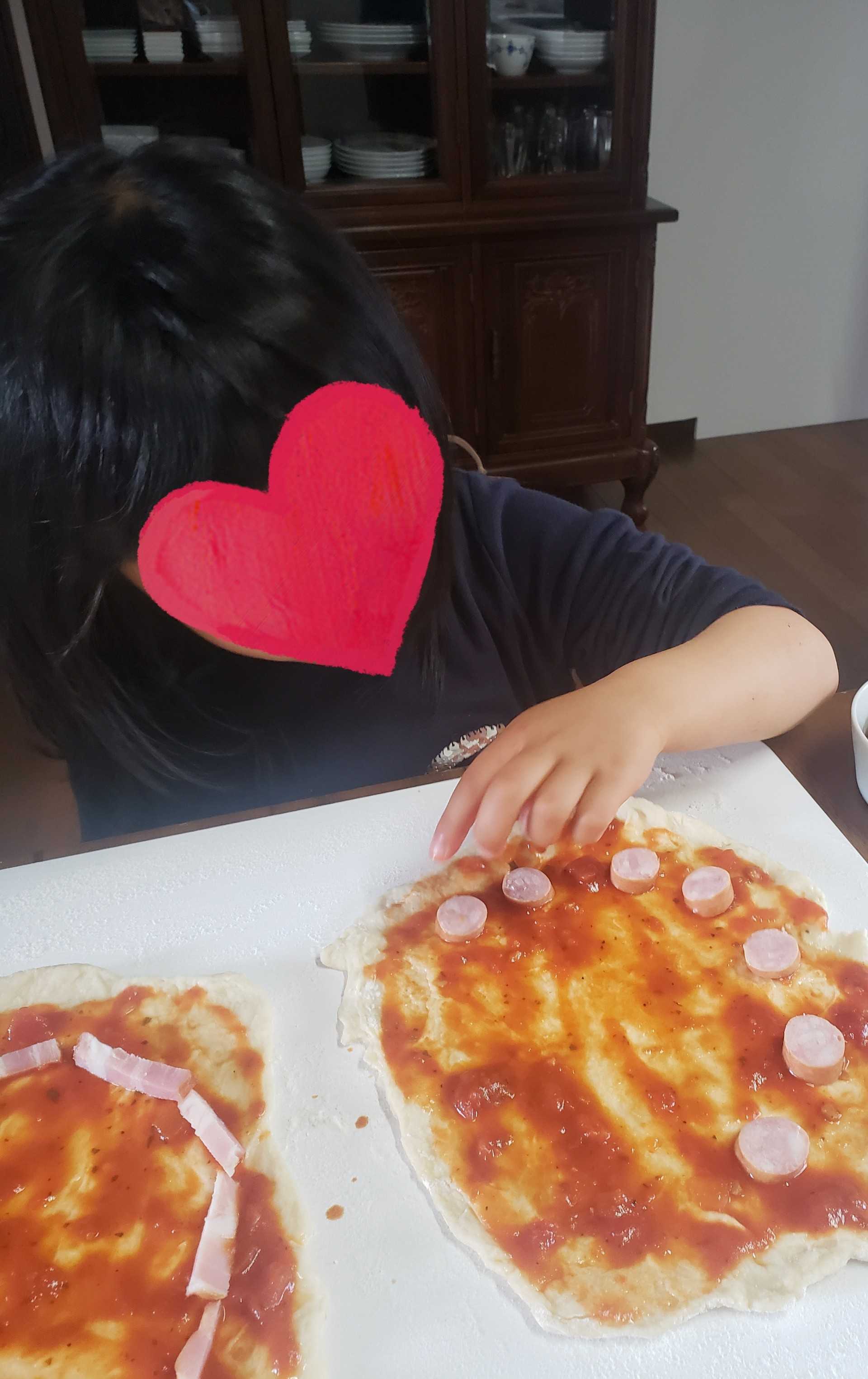 普段娘はピザをあんまり食べないんだけれど、自分でトッピングしたからから「おいしい、おいしい」って食べてたよ~~✨