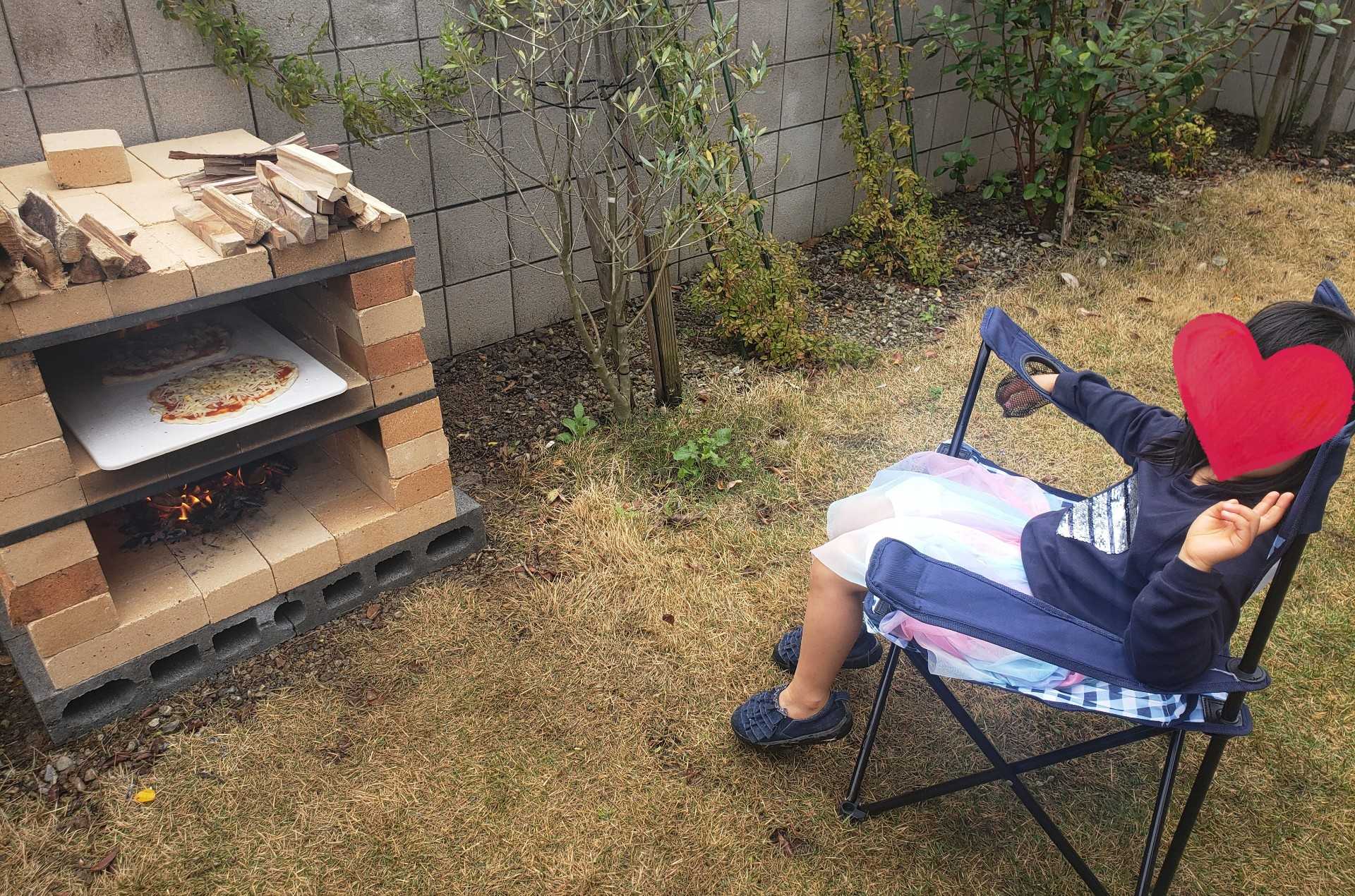 靴下を履いてないのはピザ窯作りで予備も含めてドロドロにしちゃったからです💦