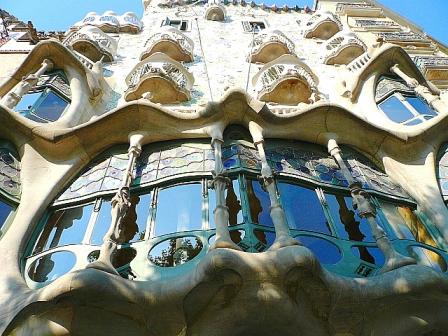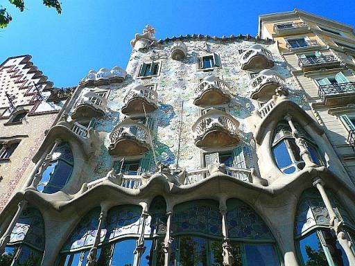 アントニオ・ガウディー バトリョ邸 1アントニオ・ガウディ(Antoni Plàcid Guillem Gaudí i Cornet)(1852年~1926年)はスペイン、カタルーニャ地方出身の偉大な建築家である。バルセロナの象徴とも言えるサグラダ・ファミリア聖堂(1882年着工~未完)は彼の作品であり、グエル公園、カサ・グエル、カサ・ミラ、カサ・バトリョ、カサ・ビセンス等、アントニオ・ガウディーの作品群としてユネスコの世界文化遺産として登録されている凄いアーティストである。その建築スタイルはカタルーニャ・モデルニスモ(カタルーニャ芸術様式)と言われフランスのアール・ヌーボー様式(新しい様式)に近い。植物や虫、等を優美にデザインの中に取り入れたアール・ヌーボーに対して、ガウディーの作品はもっと独創的で、奇抜で、緻密なデザインと技巧は奇妙な生物のようにも見える。1878年パリ万博に出品したショーケースが絶賛され、新進気鋭の建築家としてデビューする。この時、カタルーニャ繊維業界の大物であるエウセビオ・グエルが彼を認め、ガウディー建築の大スポーンサーになるのだ。グエルが最初に依頼したのはグエル別邸(1887年)で、凝った室内装飾を含めて建物全体が一個の美術品のようで、ガウディーの名をより広めたそうだ。その後グエル邸(1890年)、カサ・ビセンス(1885年)、キハーノ邸(1885年)これが初期3部作。都市型住宅として、カサ・カルベット(1900年)、カサ・バトリョ(1906年)、カサ・ミラ(1910年)の3つが上げられる。グエル公園は当初グエルが分譲住宅として売るために開発したものであったが、経済的に行き詰まり2区画だけしか売り出されなかった。そのうち一つはガウディー自身で購入。公園は後にバルセロナ市に寄贈される。下に紹介するのはカサ・バトリョ(バトリョ邸)である。色ガラスと円形タイルを使用し、はめ込まれたモザイクは、海面に光が乱反射しているように輝く。外装は波打つ石灰岩の外壁からラ・ペドレラ(石切場)の別名がある。家具調度に至るまで彼のイメージで作り上げられた邸宅である。そういう意味で、ここは丸ごとガウディー作品なのだ。中庭美しいタイルは所々カメオ式に立体になっている。何とも目の覚めるような美しいブルーのタイルだ。屋上左の煙突は煙が風に揺らいで上る様子が表現され、真ん中はドラゴンの背中だそうだ。全体がないのが惜しい。こんな丸ごと一軒自分の好きなように設計ができたなら建築家冥利でしょう。つづく・・。