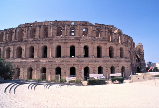 古代ローマの円形劇場 4 (エル・ジェム 1)古代ローマ人と剣闘士(グラディアトール)を紹介チュニジア、エル・ジェムのコロッセオにタイム・スリップです。当時の衣装と雰囲気を堪能下さい。映画の撮影中だったのです。何の映画か知らないけれど・・。エル・ジェムはチュニジア、マーディア県にある地方都市。ローマ時代のThysdrusは、かつてのフェニキア人の都市、カルタゴと同様に彼らの居留地の上に造られた古代ローマの遺跡の残る街。円形闘技場が建設されたのは帝政ローマ期。3世紀初頭の北アフリでは、カルタゴに続く第2のローマの都市と言われたいわゆる植民都市です。つづくリンク 古代ローマの円形劇場 5 (エル・ジェム 2 )