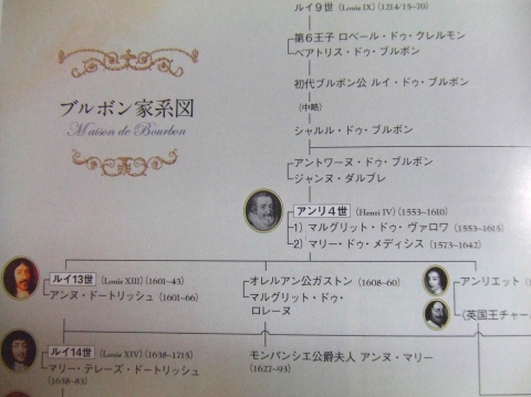 いよいよベルサイユ宮殿のまとめです。なかなかやる気になれなくて苦労しましたが、やっと終わるようです。宗教戦争から始まったブルポン王家の歴史宗教戦争ドイツに始まった宗教改革運動は各国に広まり、フランスでも、改革派(プロテスタント)はカトリック側からユグノー(huguenot)と呼ばれ、フランス王国の国内を二分した宗教戦争が勃発します。(1562年から1598年にかけて断続的に8回の戦争)フランス宗教戦争orユグノー戦争と呼ばれています。カトリックの擁護者は王家でカトリック国スペイン(フェリペ2世)やローマ教皇が支援。一方、プロテスタントの支援者はブルボン公アンリ(ブルボン王家初代の王アンリ4世)で、イングランド王家・ドイツのルター派諸侯が支援していました。ユグノー戦争は純粋な宗教上の対立ではなく、王権を中心とした勢力争いに宗教上の名目が結びついた戦いで、特に内乱後期は権力闘争の側面が濃くなり、純粋な宗教戦争とは言えなかったようです。とりあえずブルボン公アンリが時のフランス王シャルル9世の妹と結婚し、またアンリはカトリックへの改宗を発表し、戴冠後、事態終結の為に1598年にナントの勅令を公布。ナントの勅令はカトリックがフランスの国家的宗教であると宣言しつつも、プロテスタントにも同等の権利を認めたものです。それにより(信仰の自由)、長らく続いたカトリックとプロテスタントの宗教戦争は収拾されたのです。下はブルボン王室の系図です。(ちょっと見づらいかもしれませんが参考文献です。)ブルボン王家の始まり初代当主のアンリ4世(在位1589年~1610年)からルイ13世(在位1610年~1643年)宰相リシュリューの時代は、まだ動乱の傷跡が癒えず、国力の復興と民心の安定に努め、着々と成果を上げるも暗殺され、王家はまだ不安定な時代ですが、やがて二人の卓越した宰相によって政治的にも経済的にも発展を遂げ、中央集権体制の基盤を固めていきます。安定した国家体制ができた時代に王となれたのが、ルイ14世(在位1643年~1715年)で、「朕は国家なり」と太陽王の絶対王政を主張し、ブルボン家の絶対君主政治がここに確立します。国が最も豊かになった時代でもあり、14世は絶対的国家の象徴として太陽王にふさわしいベルサイユ宮殿の造営をはじめます。ベルサイユ宮殿は王政の象徴として存在したのです。欧州一となる宮殿を造る事が欧州一の国家を象徴するのにふさわしかったのは事実です。マリア・テレジアは娘マリー・アントワネットを嫁に出す時に「娘は、世界で一番美しい王国に君臨するのだ。」と思っていたのですから・・。ベルサイユ宮殿の芸術と後世の遺産夜ごと夜会の開かれる華やかなベルサイユ宮殿での宮廷人の生活から多くの芸術が誕生します。ベルサイユ宮殿での栄華はそのままブルボン王家の盛衰の歴史を現していると言っても良いでしょう。(しかし、宮殿を築いたルイ14世の長い治世の中で最盛期を迎えた王国は、すでに王家存亡の危機に向かって下降して行くのです。)豪華フランス・バロックが完成し、ルイ14世時代末期にさしかかると宮殿建築のツケと戦争の費用で国家が赤字に転落していきます。そんな時代にサロンが流行し、啓蒙思想が目を出し始め、幸いなるかな、芸術もバロックよりは質素なロココ・スタイルに移行し、質素ながらも美しくカワイイ、ロココ芸術が花開きます。それらは、宮殿の建築家や、宮廷画家の絵が証明してくれます。私達が今日思うベルサイユ宮殿のイメージは、ルイ14世時代よりも、ルイ15世のロココ時代の印象が大きいと思います。下は、フランソワ・ブーシェのポンパドゥール夫人の肖像画です。当時の流行の最高の宮廷人の衣装です。ブーシェはポンパドゥール夫人お気に入りの絵師でした。ロンドンのウォーレス・コレクションになっています。下は、ジャン・オノレ・フラゴナールの「ブランコ」です。18世紀美術(ロココ様式)のイメージを現す絵として、よく引き合いに出される絵です。ロンドンのウォーレス・コレクションになっています。下は、ジャン・オノレ・フラゴナールの「恋の追求」です。ポンパドゥール夫人の追放を悲しみ、画家がお蔵入りさせた絵です。ニューヨークのフリック・コレクションになっています。ベルサイユ宮殿での宮廷人の生活ぶりが判ると思い選定したら、偶然にも全てポンパドゥール夫人に関係していました。フラゴナールはロココを代表する画家で、アカデミーの会員でもあり、革命前の宮廷の浮ついた世相を表現した作品が多いです。そして、フランス革命と共にフラゴナールの人気もなくなり、世に忘れられて行きました。まさに宮殿と共にあった画家でした。ルイ16世(在位1774年~1792年)のわずかな親政時代にはマリー・アントワネットの洗練された趣味から新古典主義の潮流をいち早く取り入れ、王宮は絶えず芸術の先端を走り流行を排出し、後のフランスに莫大な芸術の遺産を残す事になります。しかし、財政がつき、重税をし
