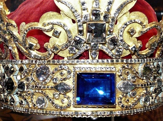 冠前部の大きなサファイアは、フレデリック1世の時代にまでさかのぼり、その父、クリスチャン1世が、1474年にミラノ伯爵から贈られたものらしいです。