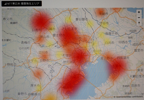 NTT東日本の障害発生マップ(スマホでも確認できます)