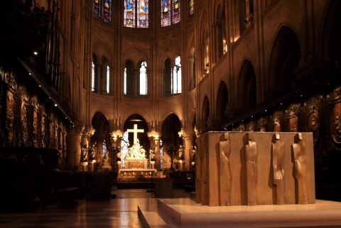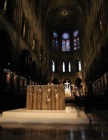 しかし・・。多くの職人の手がかかり、かつ熱烈な信仰心の元に建設された大聖堂は普通の教会ではない。フランス史に残る数々の祭典や葬儀、政治的イベントがこの聖堂で行われて来た。聖堂内部に入るとのしかかる歴史の重みは決して修復で蘇がえれるものではないのだ。