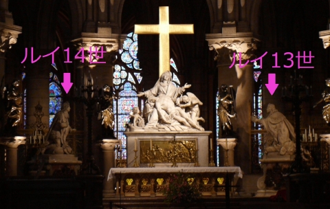 写真下に矢印したが、ピエタの後方にルイ13世とルイ14世の像もある。