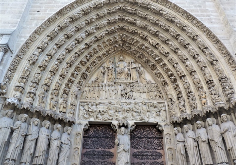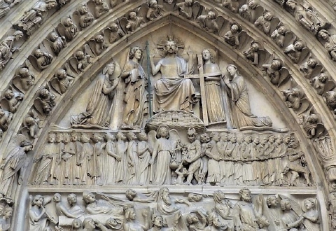 中央の扉「最後の審判」がデザインされたポルタイユのティンパヌム(tympanum)