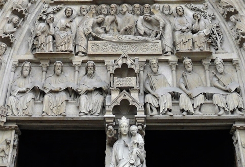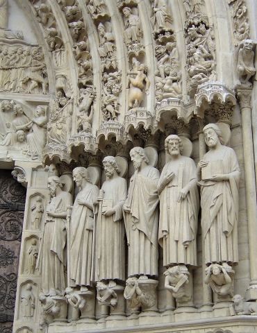 上2段は1170年頃の作でノートルダム・パリでは最も古い彫刻に当たる部分。