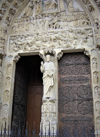 中央のトリュモー(扉口の中央基柱)のキリスト像は19世紀に取り付けられたもの。