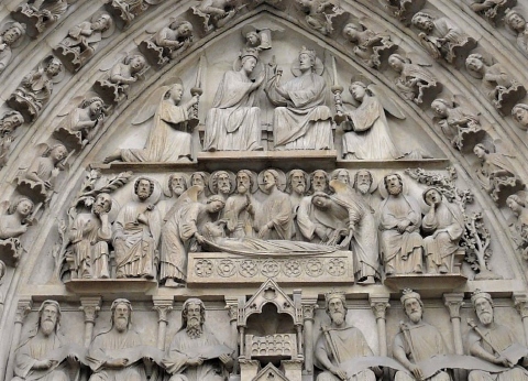 左の扉 聖母マリアのポルタイユのティンパヌム(tympanum)