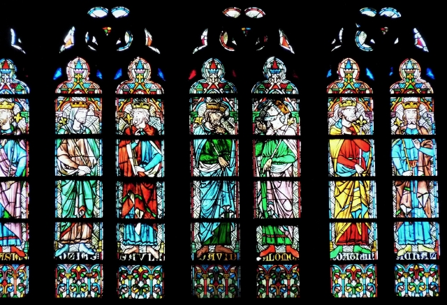 1965年、現在のステンドグラスは、ル・シュバリエ(Le chevalier)の手により中世の製作法と色彩が復活されている。