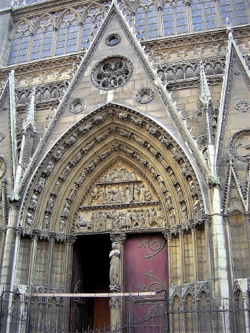 ノートルダム創建の初期の姿が最も残っている部分。ポルタイユのゴシック装飾の切妻型のデザインなど正面ファサードの簡素さとは違って見事である。