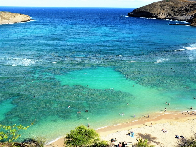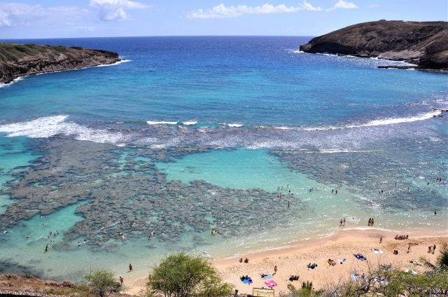 ハナウマ湾はココヘッドのクレーターでカルデラです。