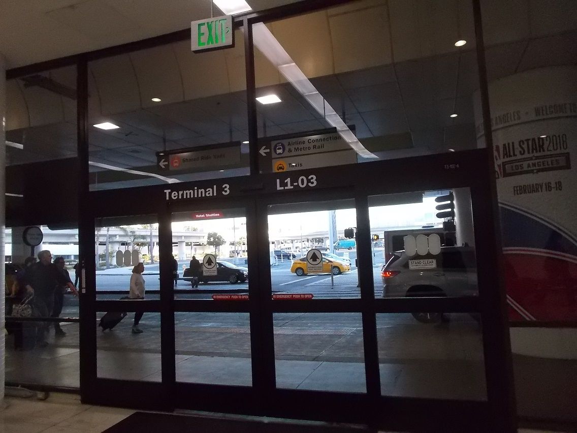 ロサンゼルス空港 第3ターミナル ホテルシャトル・レンタカーシャトル乗り場シャトルバス、フロント上に「HILTON HOTEL」と書いてある、ヒルトン ホテルのシャトルバスに乗ります。利用ホテルのシャトルが来たら手を上げて合図すると目の前に止まってくれますロサンゼルス空港 第3ターミナルホテルシャトル・レンタカーシャトル乗り場ロサンゼルス空港 第3ターミナルホテルシャトル・レンタカーシャトル乗り場アラモレンターカーシャトルバスもここから乗ります空港第3ターミナルホテルシャトル・レンタカーシャトル乗り場ヒルトン、シェラトン・マリオットなどは等間隔の時間で巡回しているので、ホテルシャトル乗り場で待てば大丈夫ですホテルによっては空港内のホテルシャトルバス呼び出し場面で呼ぶ必要があります。ホテルの名前が書いてあるボタンを押して、自分が何処にいるかを伝えますデルタなら「No3ターミナル」でOK。10分から20分で迎えに来てくれます空港第3ターミナル利用ホテルのシャトルが来たら手を上げて合図すると目の前に止まってくれますヒルトン・ホテル・シャトルホテルシャトル大きな荷物はドライバーが載せてくれるので任せる事にしています手荷物1個1ドルのチップが必要です、5個だったら5ドルですホテルシャトル車内ホテルまでは 5-10分で到着しますホテルシャトル車内2018年1月28日現在、ヒルトン・ロサンゼルスエアポート・ホテルは全面外装工事中で、正面車寄せも使えなくて、フロント横の仮エントランスに到着し裏口が使われていますその為、送迎シャトルバスもここで乗り降りします降りた所が階段で、重い旅行バックを持ち上げるのは大変ですが。スタッフが待機していて重たい荷物を上まで運んでくれました。ホテルシャトル車内-----------------ホテルから空港ヘはドライバーが荷物を車内に運んでくれるので任せます、手荷物1個1ドルのチップが必要です、5個だったら5ドルです。利用航空会社を聞かれるので、航空会社名「デルタ」と伝えますロサンゼルス空港までは5-10分ですロサンゼルス空港までは5-10分ですロサンゼルス空港第2-3ターミナルがデルタ航空です出発がトムブラットレーの場合でもデルタ航空のカウンターで手続きを行い、空港内巡回シャトルバスでトムブラットレーに移動しますロサンゼルス空港第2-3ターミナルロサンゼルス空港第2-3ターミナルロサンゼルス空港第2-3ターミナル
