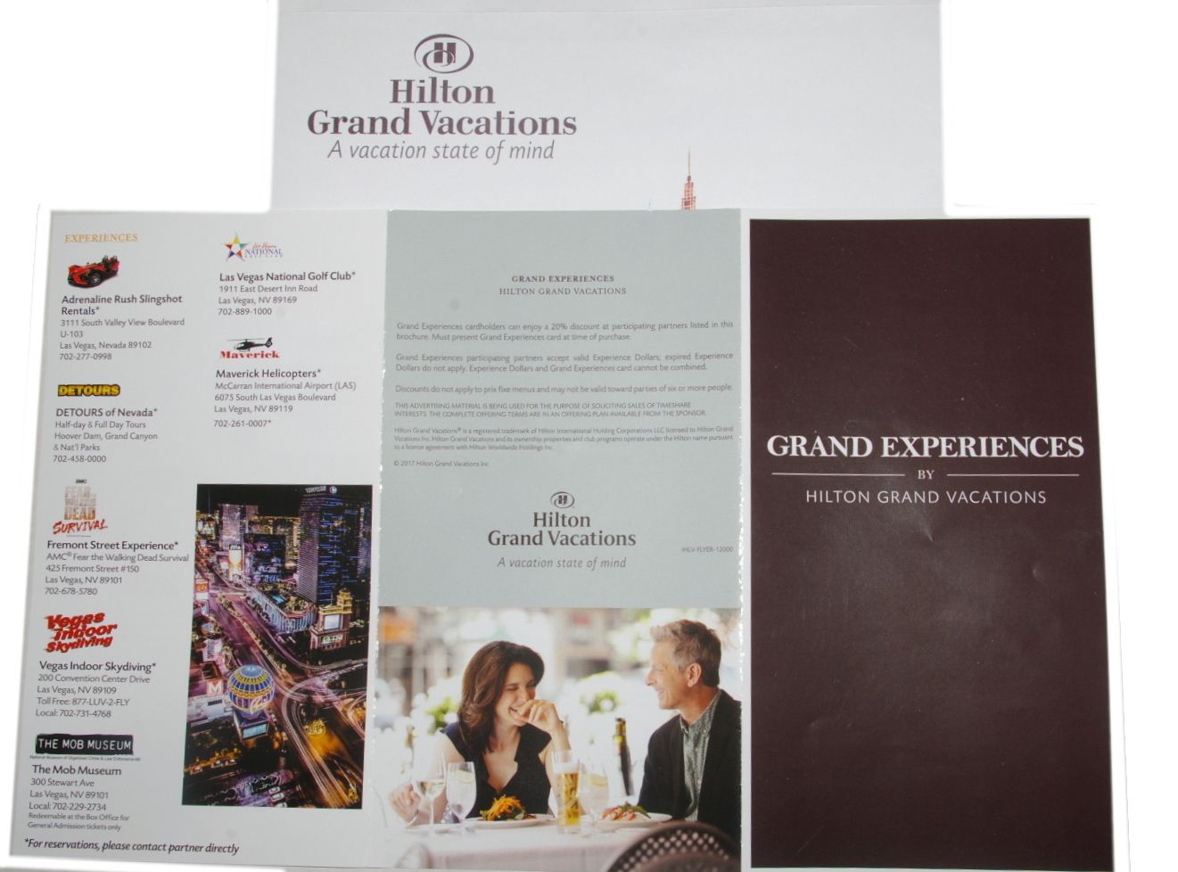 ラスベガス ヒルトン・グランドバケーション・エラーラでグランドバケーション オーナー&ダイヤモンドメンバー宿泊者専用レストラン20%割引カードを貰いました。カードの名称はHILTON GRAND VACATIONSGRAND EXPERIENCES PARTIGIPATING PARTNERSグランド・エクスペリエンス パーティーパートナー カード ですGRAND EXPERIENCES PARTIGIPATING PARTNERSグランド・エクスペリエンス パーティーパートナー 現在33ヵ所のレストラン・バー・ゴルフ場、ヘリコプターツアー会社スカイダイビング・ミージアム・その他色々利用できます店員さんはこのカードのことをご存じない場合が多いです上の人に聞いてきますといって確認をとります、なぜか必ず店長かマネージャークラスの方が挨拶に来てくれます。不思議なステータスカードです。有効期間(2018/1/18~1/25)のあるカード2枚と有効期限なしのカードを1枚貰いました20%OFFは大きいです今後ラスベガスのレストランで活躍間違いなしのありがたいカードです20%OFFは大きいですMiracle Mile Shop のディスカウント&無料プレゼントブック 日本の、JAFメンバーカードをMiracle Mile Shop インフォメーションセンターで見せるだけでもらえる、お得なクーポンブックです Miracle Mile Shop お得なクーポンブックMiracle Mile Shop お得なクーポンブック