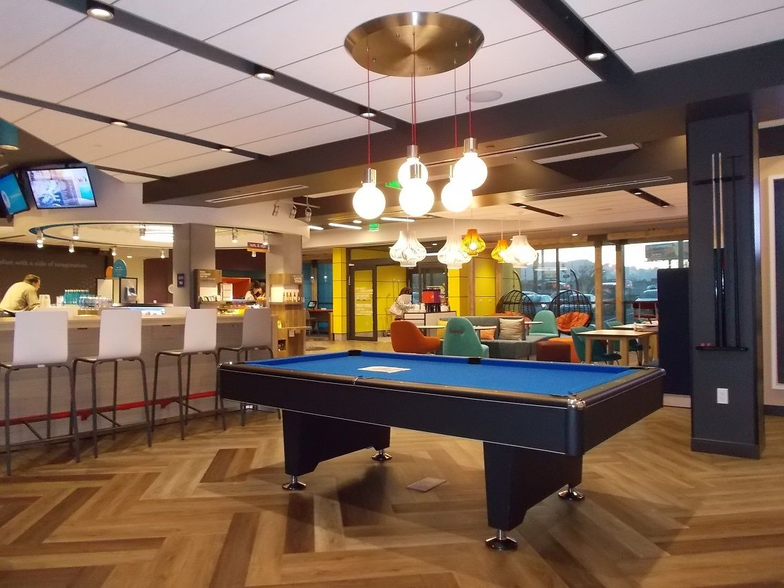 2018年1月 1年前に始まった建設工事、何時も隣のホームウッド スイート ホテル ラスベガスから見ていた建設工事も終了。どんなホテルなのか興味津々ヒルトンホテルグループの一番新しいブランドホテルなので早速予約宿泊しました。予約開始直後、オープン当初は満室、ソールドアウトの大盛況、予約の取れない状況が続いていました、たまに空き部屋が出てもアメリカン方式の価格設定の為高額になり、高額過ぎて予約できませんでした。1月も10日を過ぎた頃にお祝いモードも終わり、通常の料金で普通に予約が取れました。(今は普通の状態に戻ったようです)。フロントロビーに「プール・バー」が・・・ありましたトゥルー・バイ・ヒルトン・ラスベガス エアポート1階 チェックインフロントデスクが中央にあり、レストランを中心に沢山のテーブル席がありますポケットビリヤードテーブルが1台あり、空いていれば自由に使用できます ビリヤードキュー(Billiards Cue)は右側に立てかけて置いてありますトゥルー・バイ・ヒルトン・ラスベガス エアポート ロビーレストラン 売店 カウンター席がありますトゥルー・バイ・ヒルトン・ラスベガス エアポート ロビー何時も利用するアヒルホテルが窓の向こうに見えますキッズ用の玩具キッズ用の玩具お洒落なスツールとスモールテーブルが沢山並んでいますビリヤード台 8人掛けのカウンター席窓の向こうに隣のホームウッド スイート ホテル ラスベガススナック菓子の販売もしていますコーヒーは自由にいただけますブランコ椅子が、2台 見ると座りたくなるのか、通る人の多くが興味深く座っていきますお洒落なテーブルビジネスラウンジはタブレット2台と印刷機1月のラスベガスは午後5時で暗くなります照明のついたホテル(1)照明のついたホテル(2)照明のついたホテル(3)照明のついたホテル(4)ホテル 正面駐車場1月のラスベガスは午後5時で暗くなりますホテル 正面駐車場