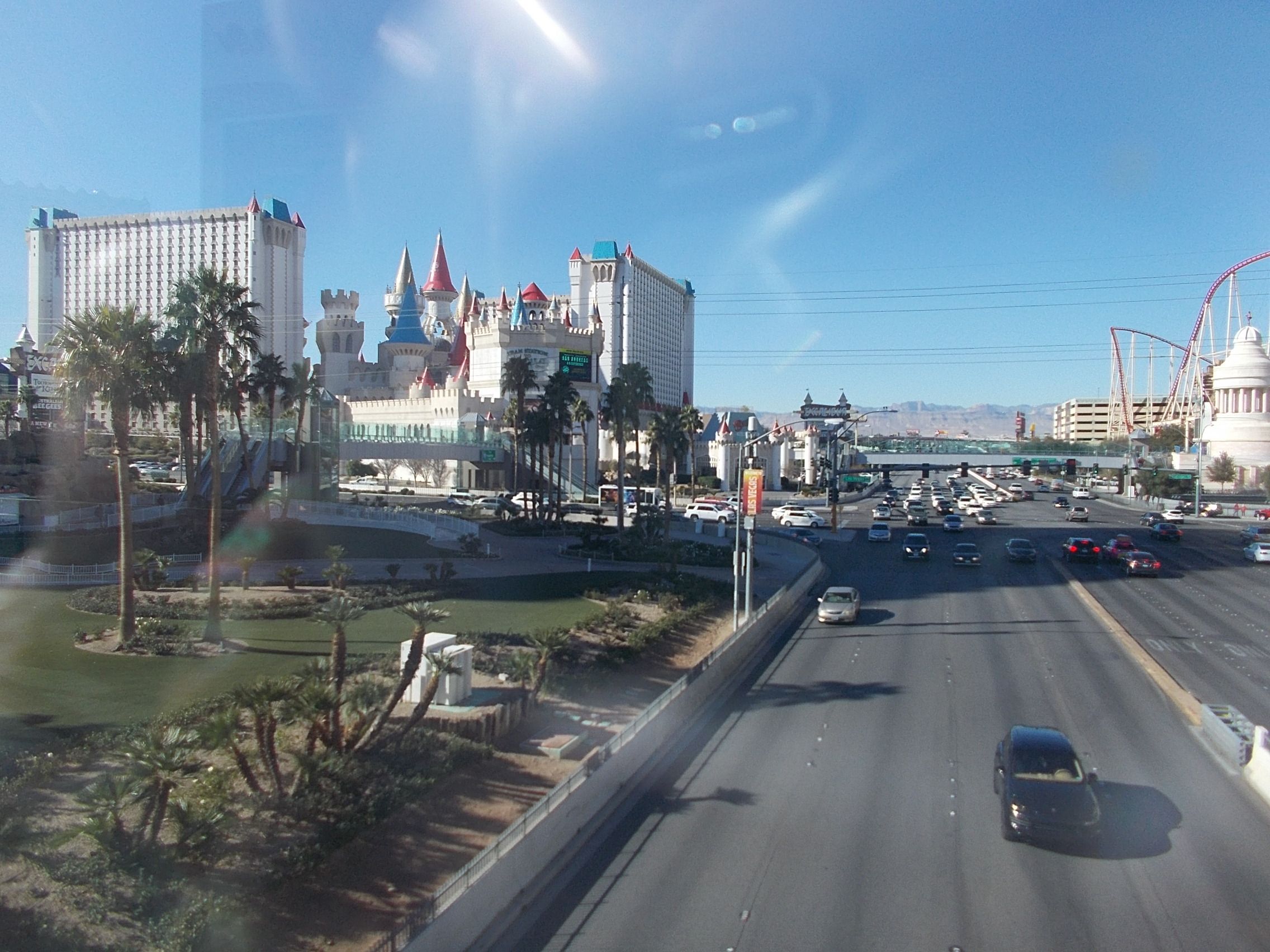 ラスベガス6日目朝 快晴・寒い ストリップ通りとトロピカーナ通りの横断歩道橋 改装されて綺麗になっていました
