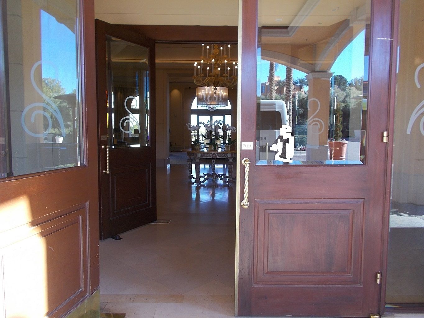 正面エントランス ホテル入り口 右側はプール