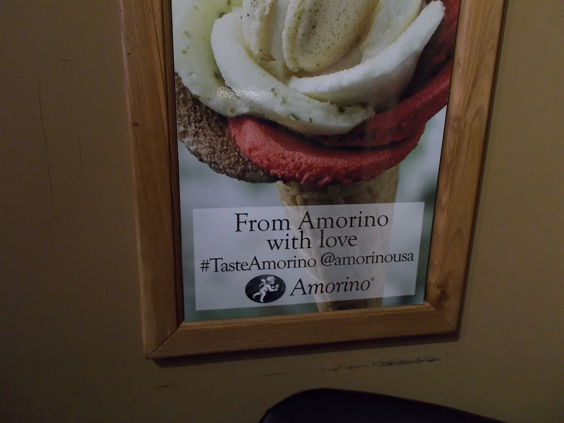 「アモリーノ」ロゴ看板 Amorinoと 花びらアイス