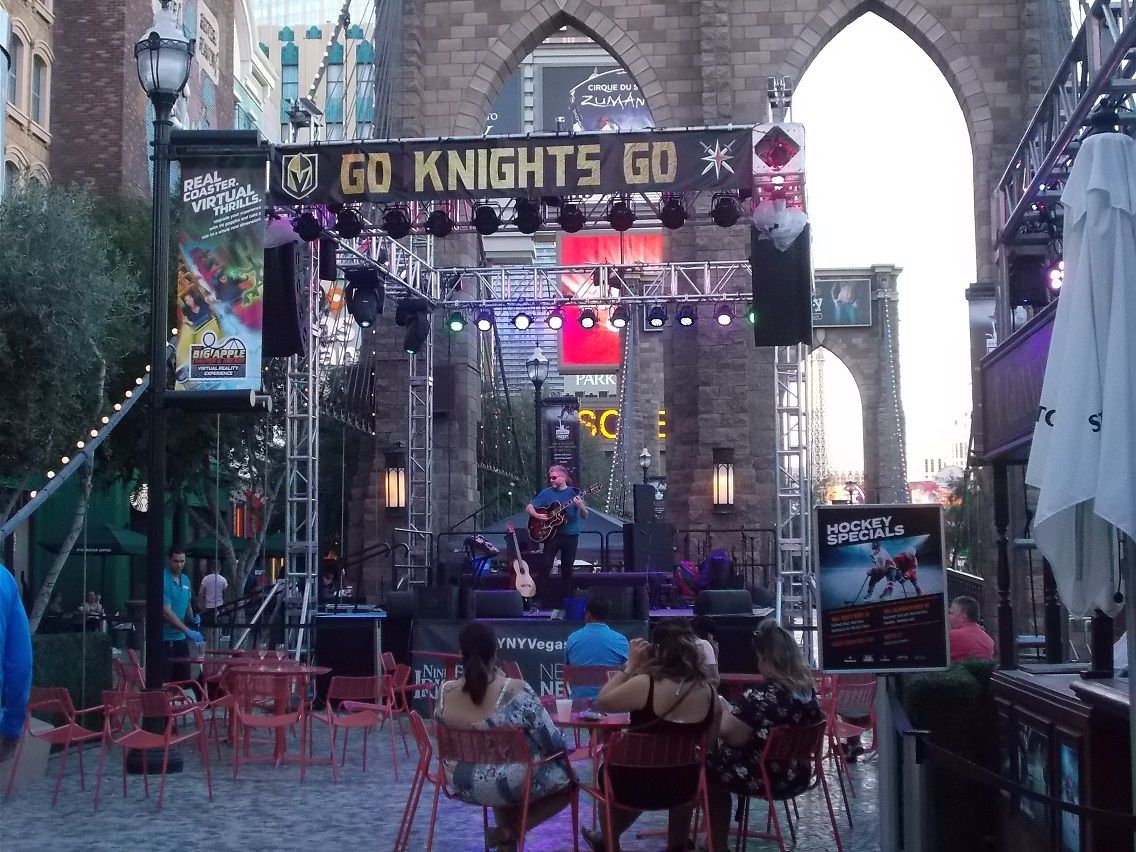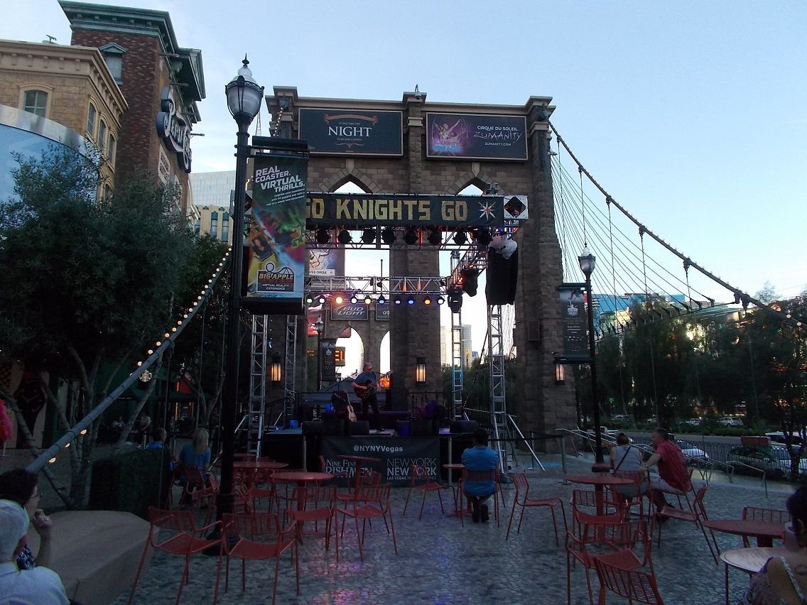 2018.4.20~ 勝ち続ける ベガス・ゴールデンナイツの為に、ブルックリン橋に特設ステージが出来ていて毎日演奏会をしていました