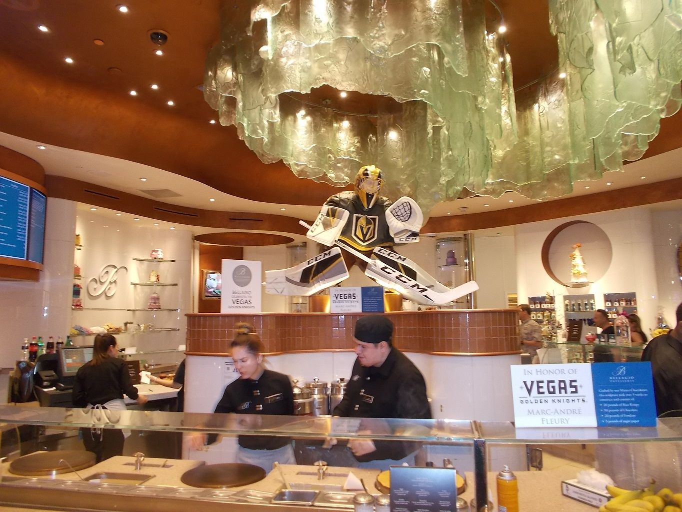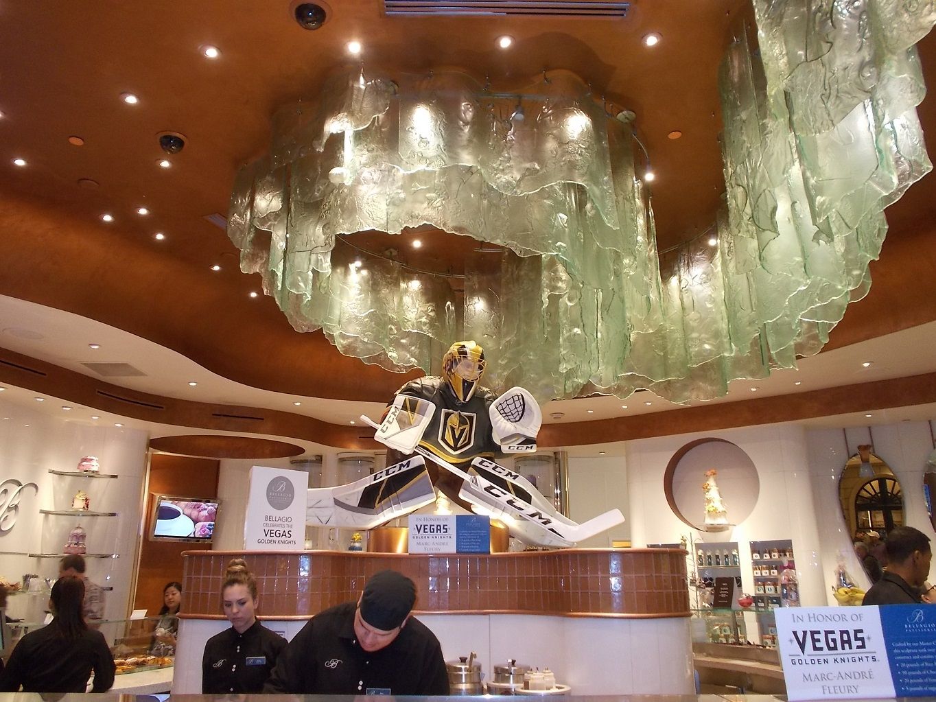 ベラージオのお店の中に飾られたゴールデンナイツゴールキーパー