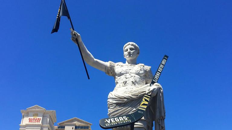 シーザース・パレスの像もゴールデンナイツのギアで飾られています