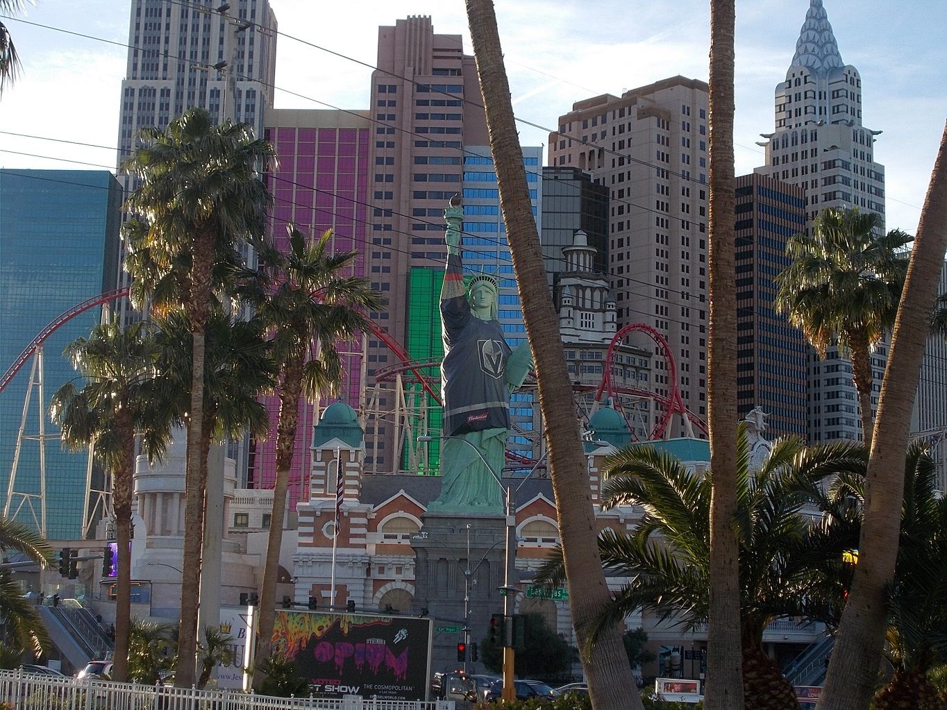 ニューヨーク・ニューヨーク自由の女神像もゴールデンナイツのユニホーム