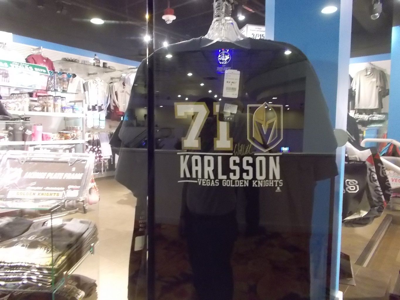 ヒルトントロピカーナホテルのお店の中に飾られたゴールデンナイツ・ユニホーム