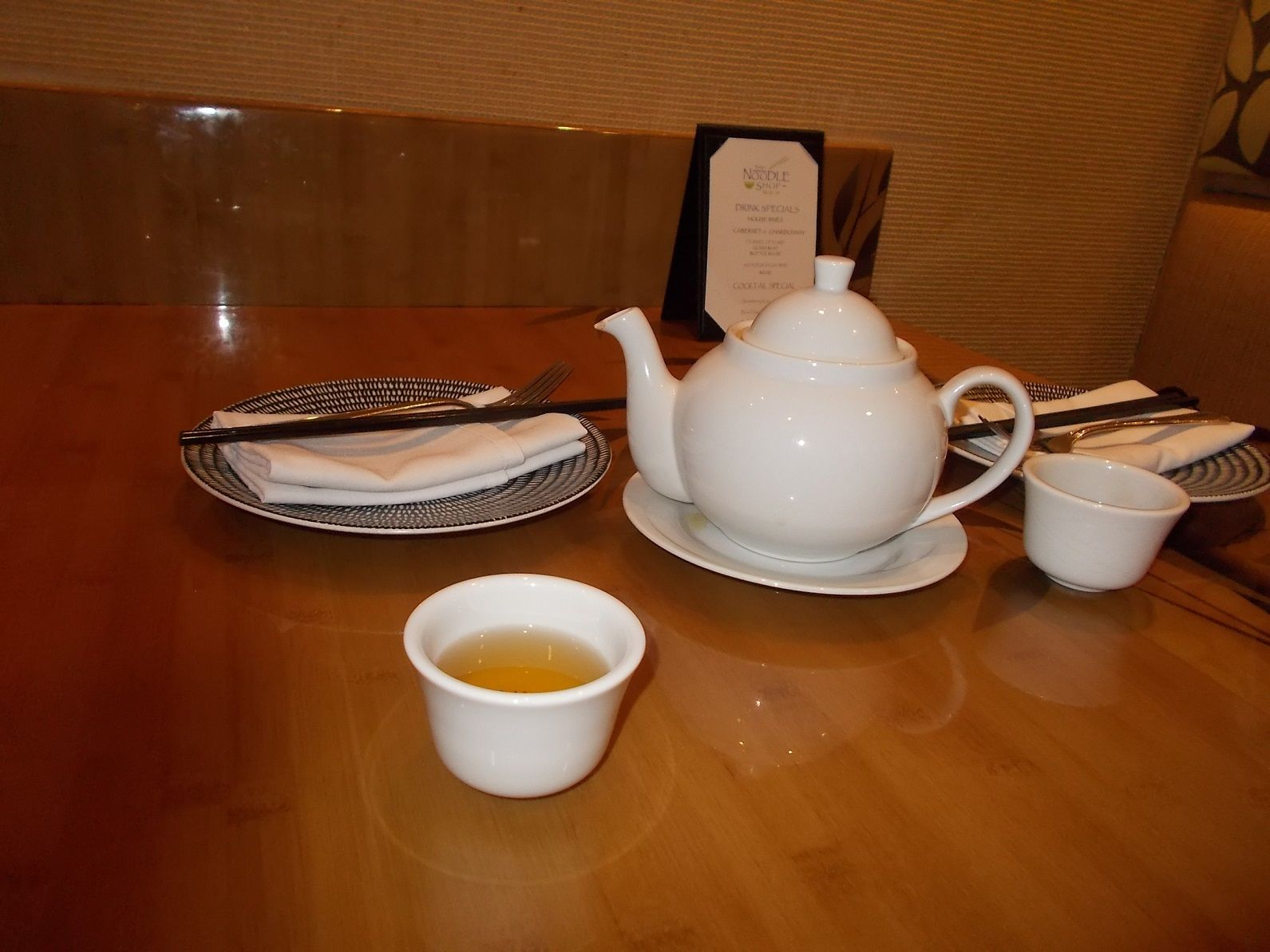 「飲み物は」と聞かれ、つい、メニューも見ないで「グリーンティー」と頼むと