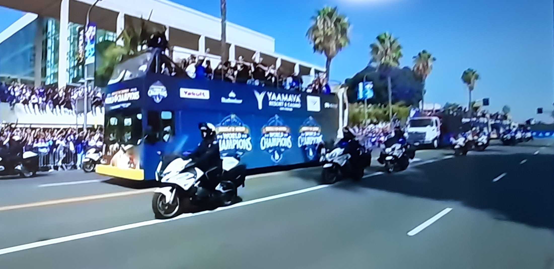 地元でパレードを行い、ファンと優勝を喜び合った。
