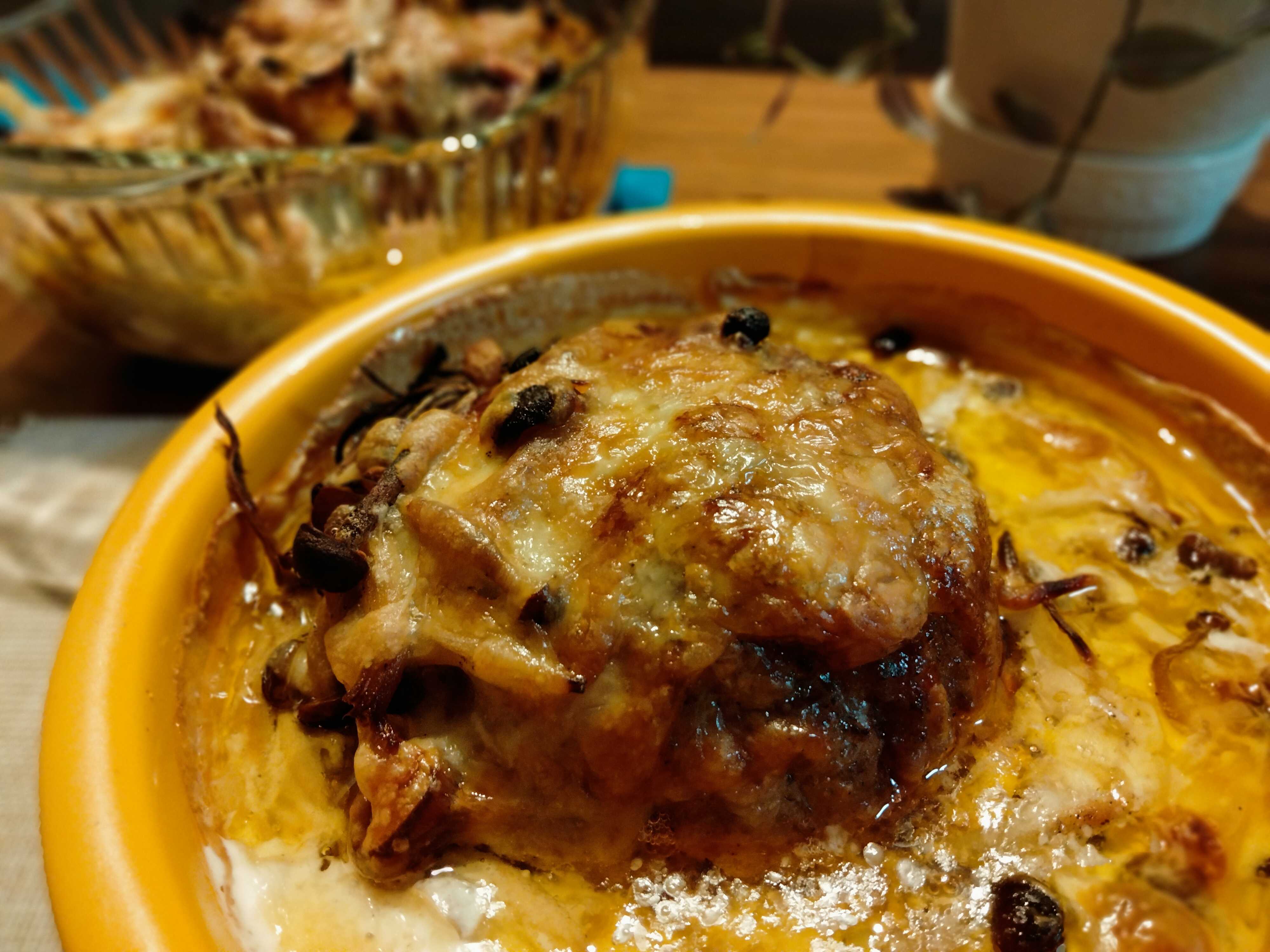 今夜も包丁あまり使わない料理玉ねぎザクザクスライスしめじは石づき外すハンバーグ(出来上がっているのを購入😅)一つはホワイトソース系もう一つははトマトソース系チーズをかけてオーブンで220度×40分程度出来上がり子供は大喜び私も簡単で助かる😋