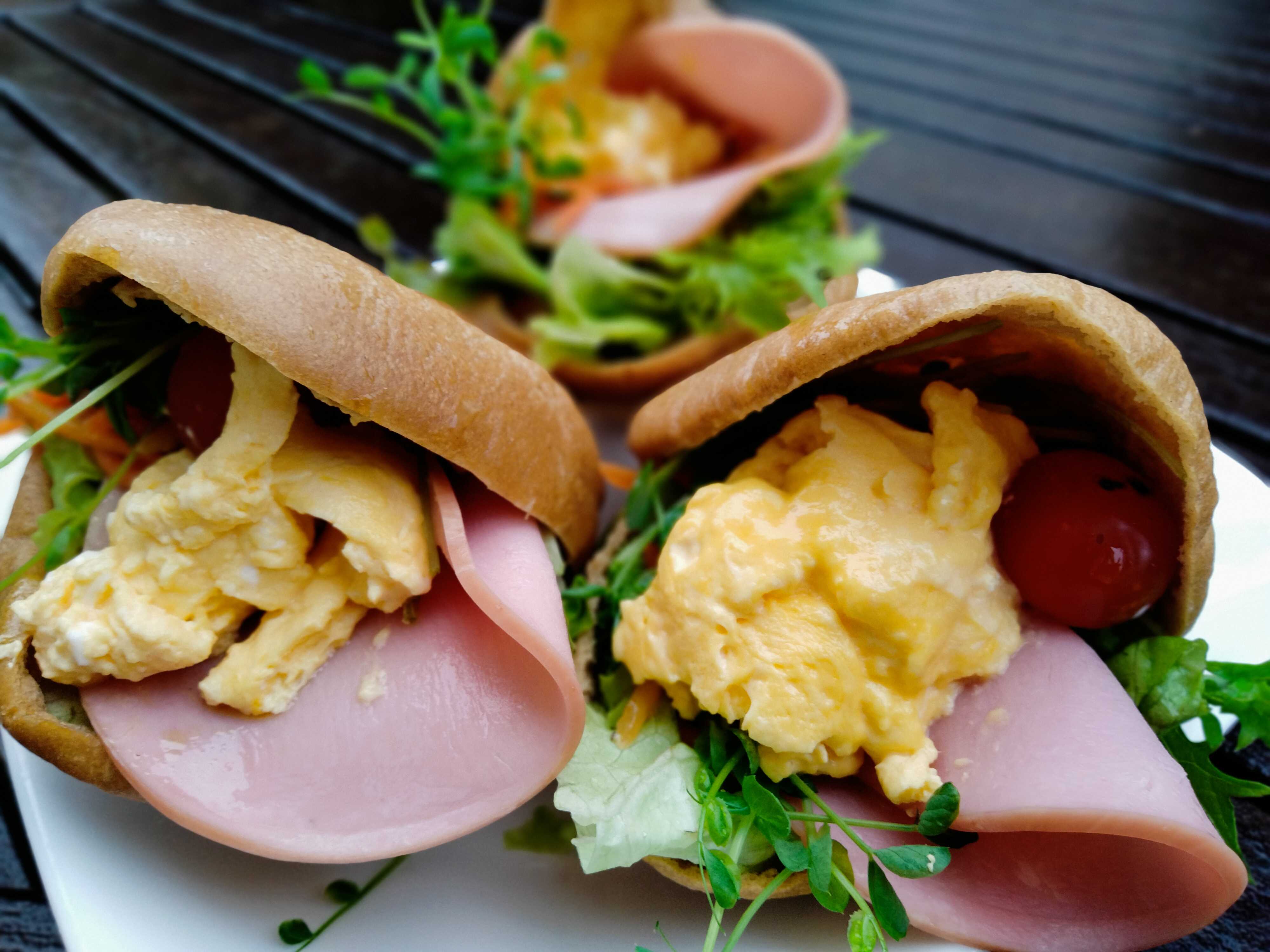 ピタサンドモーニングがルーチン化した我が家野菜たっぷり・タンパク質も沢山食べられる準備時間は5分も無いかな~ピタパンは冷凍庫でストックしておいて、冷凍庫からだして20秒程レンジでチンして完全解凍している間にスクランブルエッグをレンジで作れば完成❗最後に豆苗を添えてなんだかブーケみたい🥙