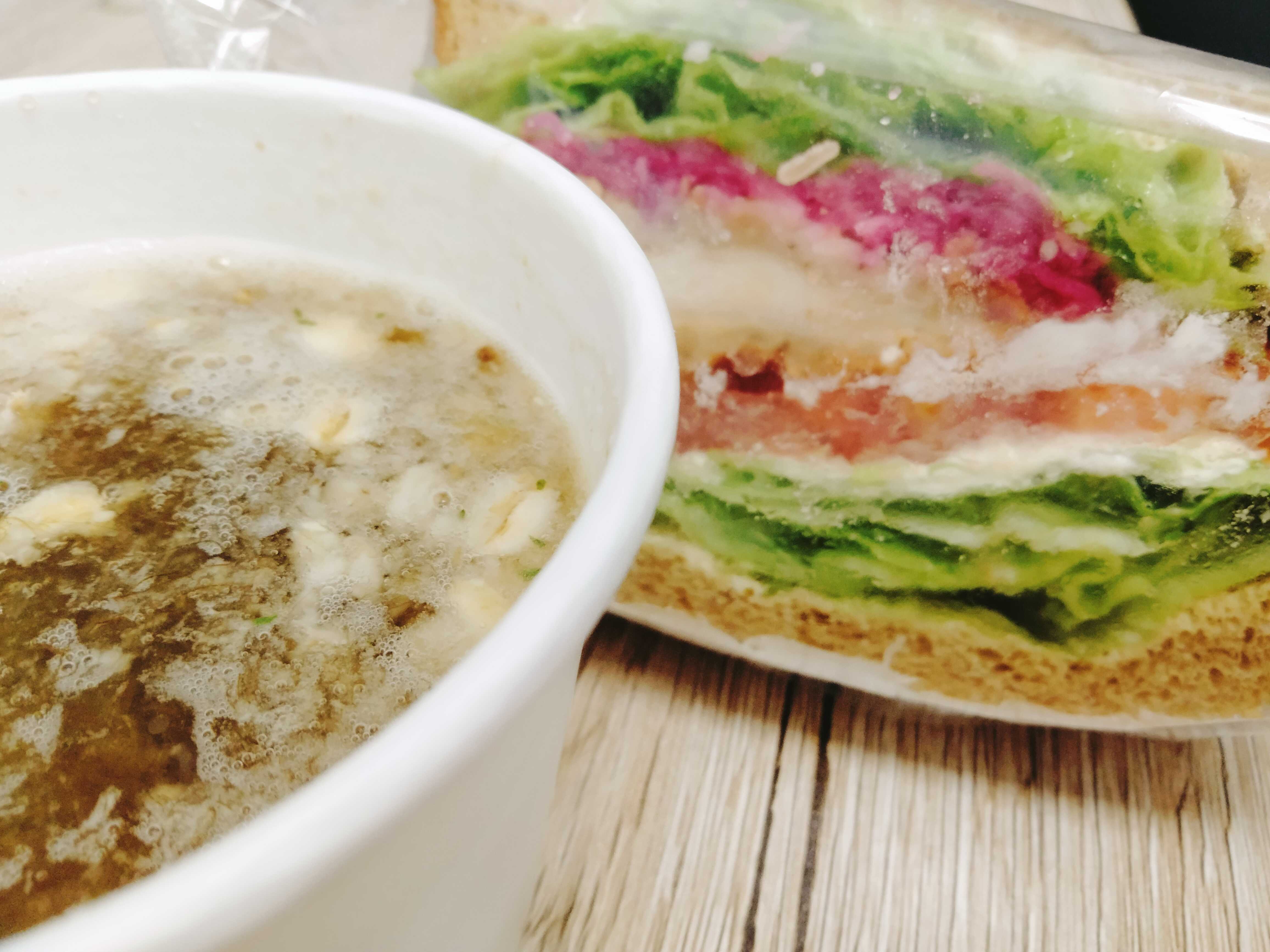 低糖質食パンを焼いたので具沢山サンドイッチ+オートミールスープ家族全員同じ🥪具沢山過ぎた😅あごはずれそう😅美味しい😋😋😋