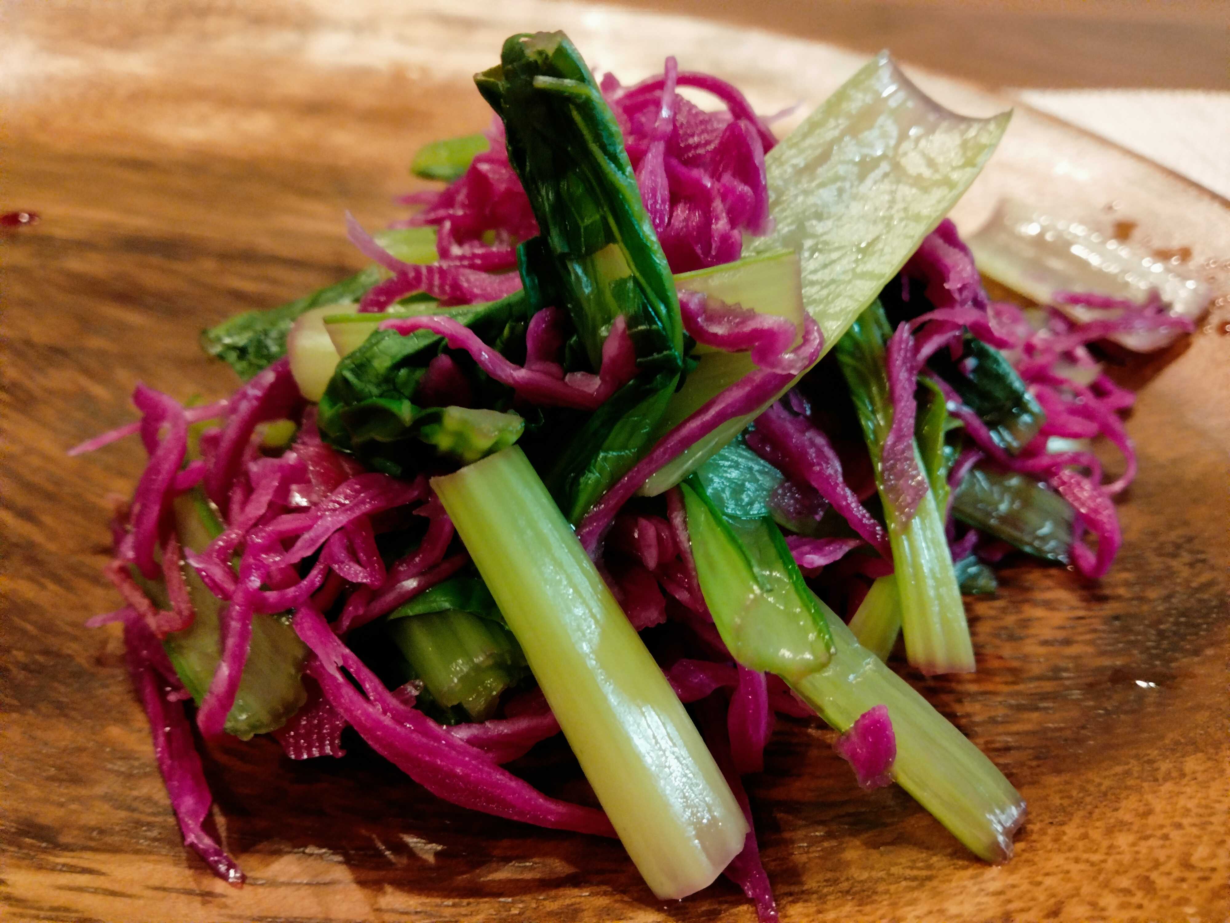 今夜は少し野菜が足りないかな~と野菜室を覗いたら、小松菜と紫キャベツのピクルスを見つけました小松菜のお浸しにする予定でしたがお浸しのだし汁作るのがめんどくさい😅ということで一緒に和えてしまいました😁これにジャコを加えたら栄養満点のアルモンデ惣菜