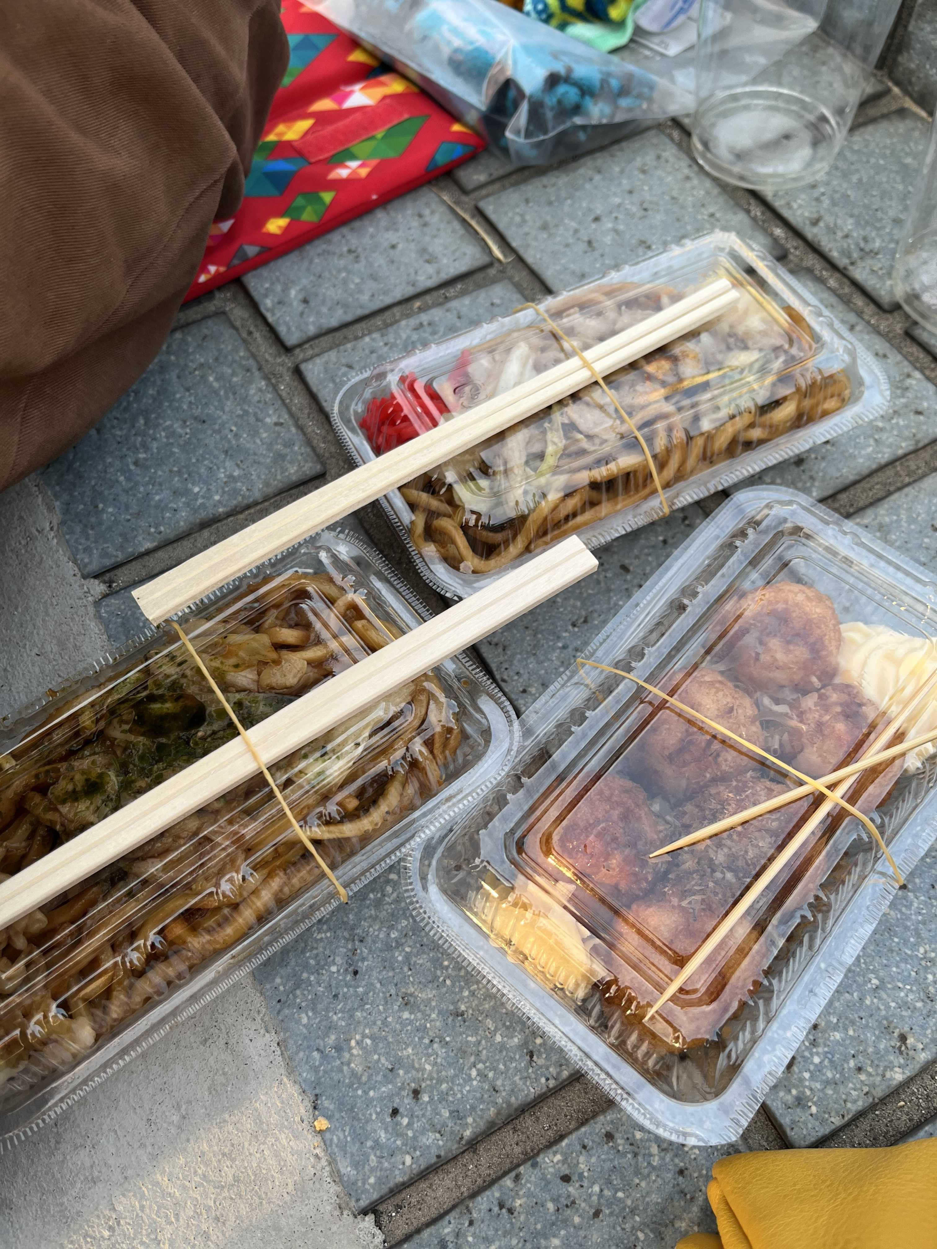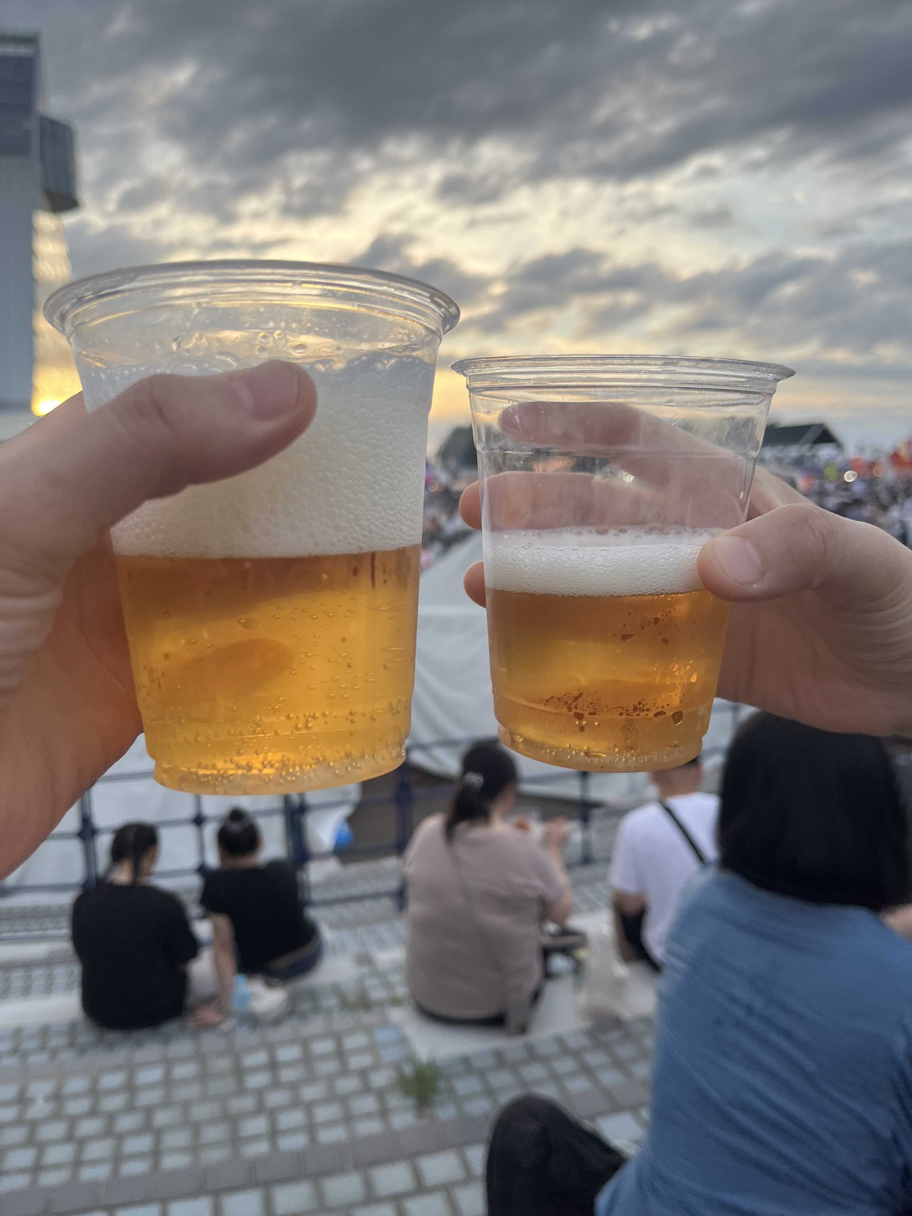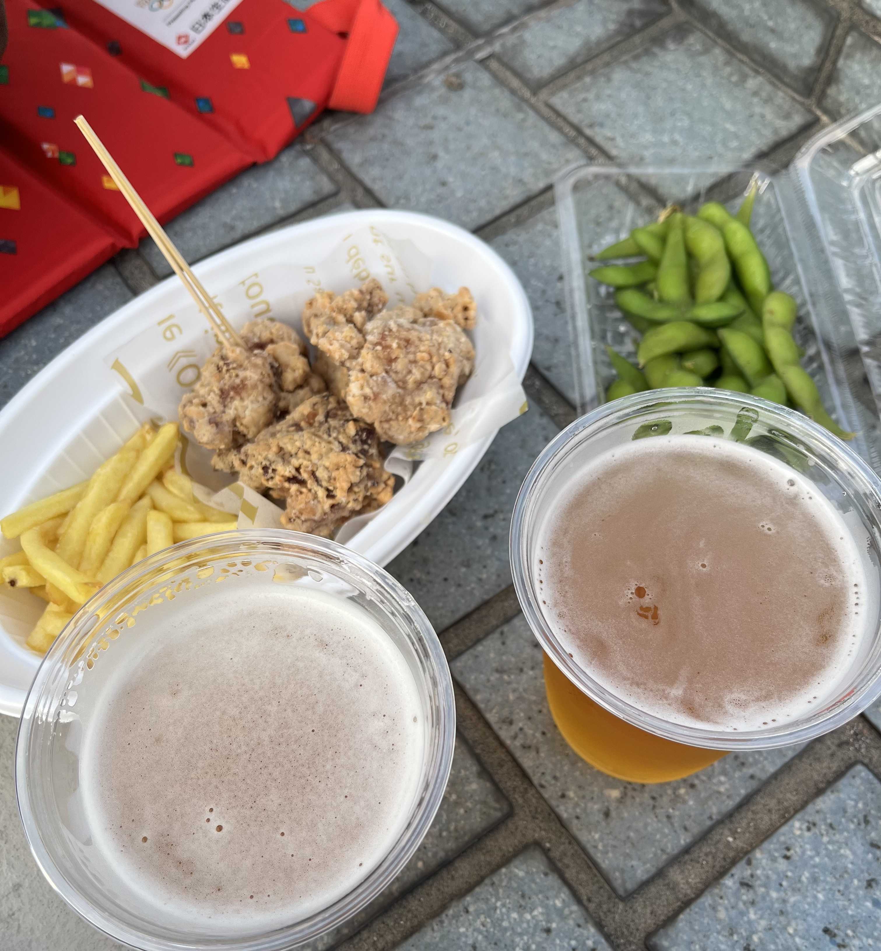 🌸缶ビール(人混み大変でおかわり買いにいけなかったら〜の時用)。もちろん生ビールの方がいいんだよ💦。