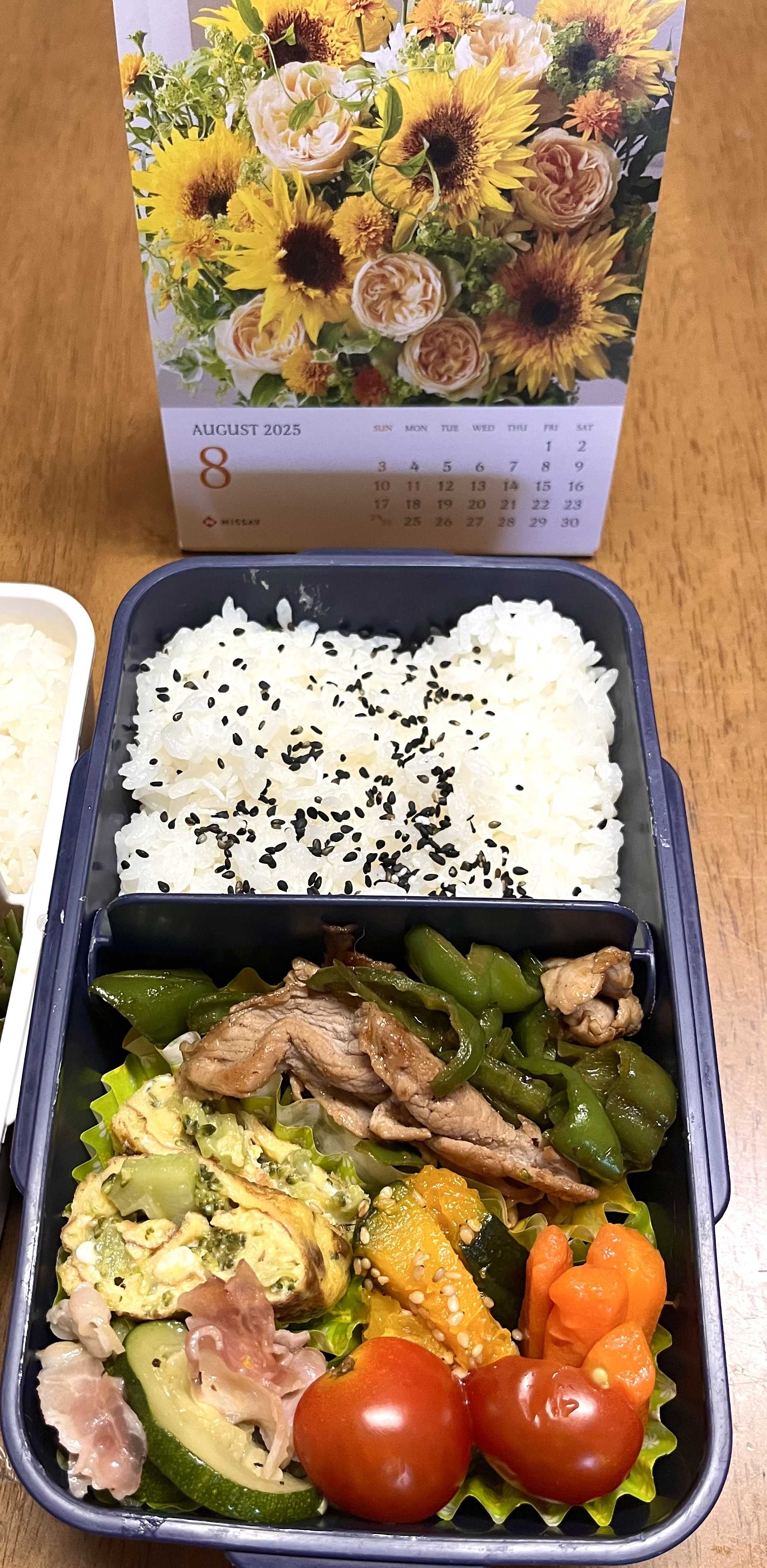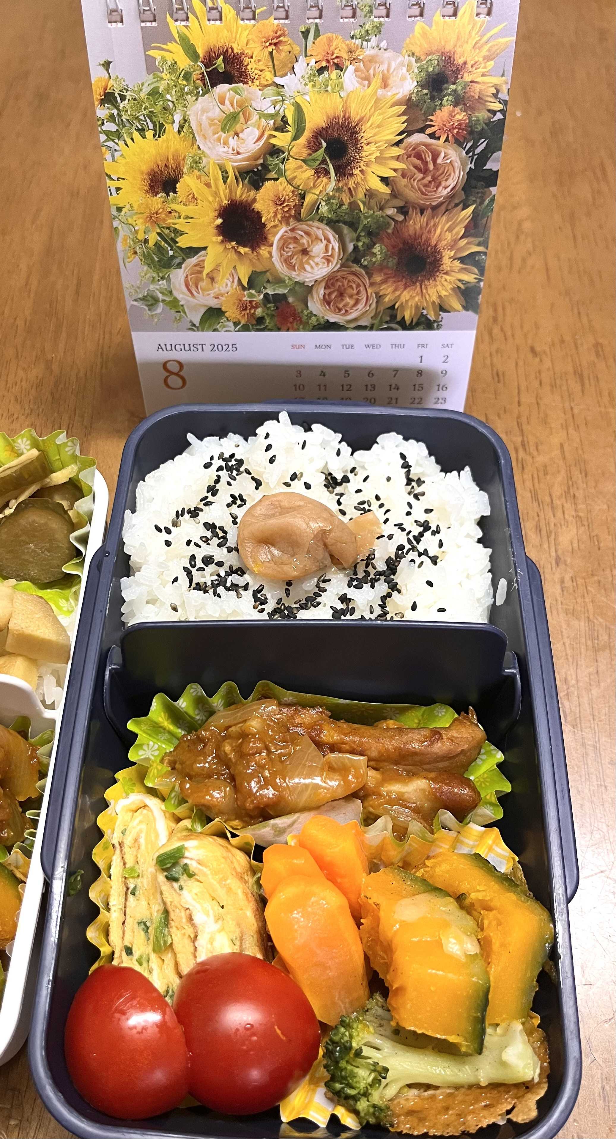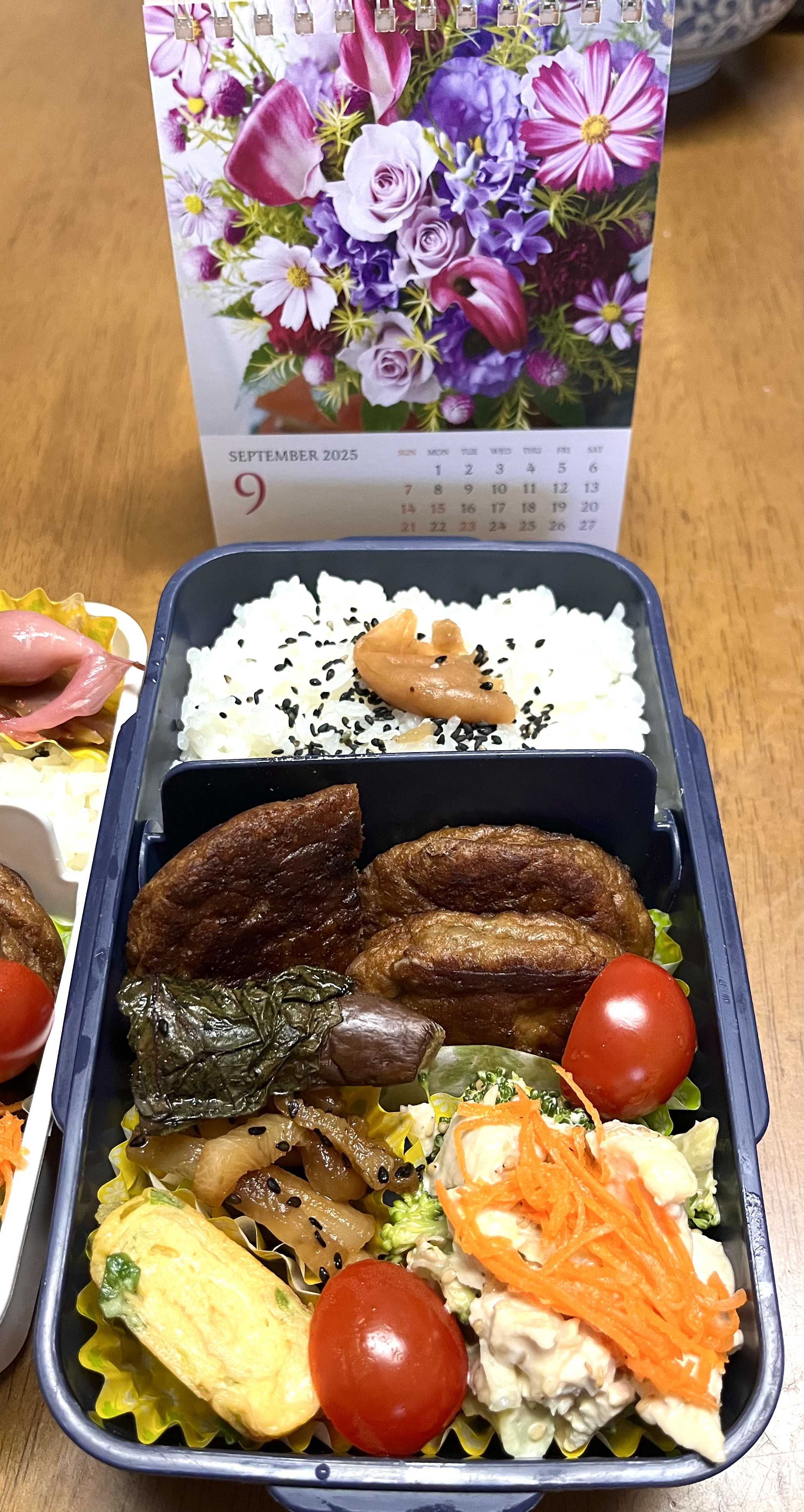 8月25日(月)。🍀ピーマン焼肉弁当。りん、夏期講習終わって(月)、(火)とテスト日です😓。8月26日(火)。🍀塩麹鶏むね焼き弁当。青森もとにかく暑い🥵。35℃越え。8月27日(水)。🍀目玉焼きチャーハン弁当。8月28日(木)。🍀唐揚げ弁当。ケチャップかけ。塩麹で下味冷凍してるお肉だけど、やっぱりケチャップかけた方が美味しい😋。8月29日(金)。🍀オムライス弁当。8月30日(土)。🍀おにぎり弁当。りん、土曜日、日曜日と学校で模擬試験。1日目はお弁当必要です💦。私は往復送迎係。私は至ってフツーの週。今週のスイーツ💕。ホットクック、ヨーグルトケーキ。混ぜるだけ。ホットクックに入れるだけ💦。焼き上がり〜。🌸ヨーグルトケーキ。今週のランチ。炊飯器で豚丼。ホットクックレシピなんだけど、ホットクックはいつも週末はフル活用なので、炊飯器で代用。🌸豚丼。出来上がり〜。炊飯器でも問題なく作れました👍💦。
