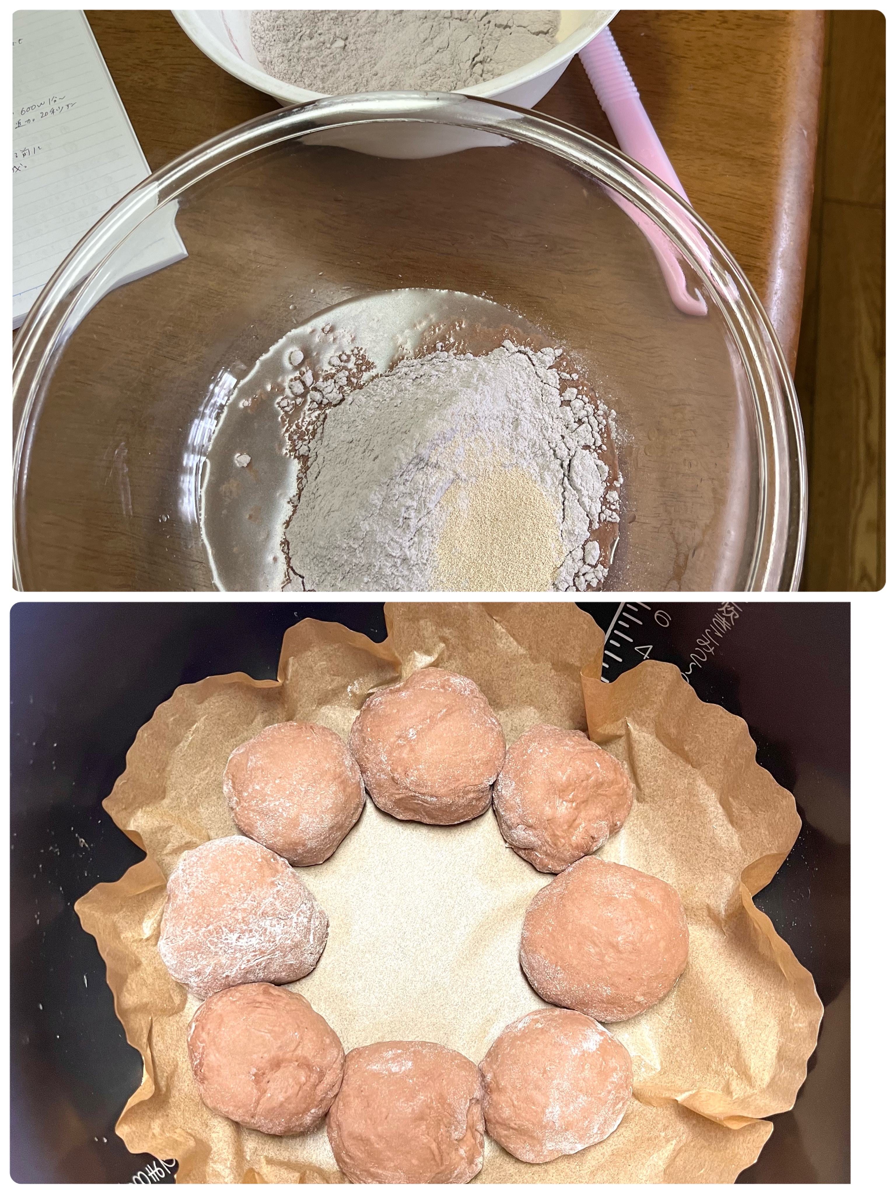 4月28日(月)。🍀野菜たっぷりチャーハン弁当。4月30日(水)。🍀豚ナス味噌炒め弁当。5月1日(木)。🍀鶏マヨ焼き弁当。カレンダー、まだ4月😱。全然5月って感覚なし。寒いし😰。巷じゃゴールデンウィークらしいけど、我が家は至ってカレンダー通り。みんな仕事、学校。5月2日(金)。🍀焼きそば弁当。写真撮り忘れ🥺。私は午後から有給休暇。学校で奨学金の説明会とか、PTAの報告会とか。今年のゴールデンウィークは私はほとんど家。庭のお花どうしようかとか考え中。あと、りんの部活の送迎。ギリギリでお願いされた時にはイラっとくることもあるけど、これもあと1ヶ月。って思えば、まあいいか。って気分になる。私は今、パン作りブーム。自分の持っている型とか、家族の食べきれる分量の計算とか、どっちが美味しいレシピか、とか、いろいろ試行錯誤中です😊。ベーカズパーセントを表にして比べる計算してみました。久しぶりの山型食パン。パウンド型にアレンジ。食べ切りサイズです😋。🌸2つ山型食パン。🌸3つ山型食パン。まだまだ技術不足😓。🌸トマトソースピザ。いつもの手作りトマトソース、ホットクックバージョンにオリジナルで作ってみました。大成功‼️。水っぽくならずに好みのトマトソースに仕上がりました。このピザ、自分で言うのもなんだけど、絶品です😍。🌸あんぱん&クリームパン。発酵前。 発酵後。お化粧後。カスタードクリームはお手製です。ホットクックだと10分でできるので簡単です😋。焼き上がりー。あんぱん、クリームパン、かなり久しぶりに作った😱。あんぱんなんて20年前のパン教室の講師試験のとき、数え切れないほど練習して作ったのに、コツとか手順とか忘れてた😭。次何作ろうとか、この型で、この分量で、出来上がりはこんな感じ。とか考えてる時が1番楽しい。