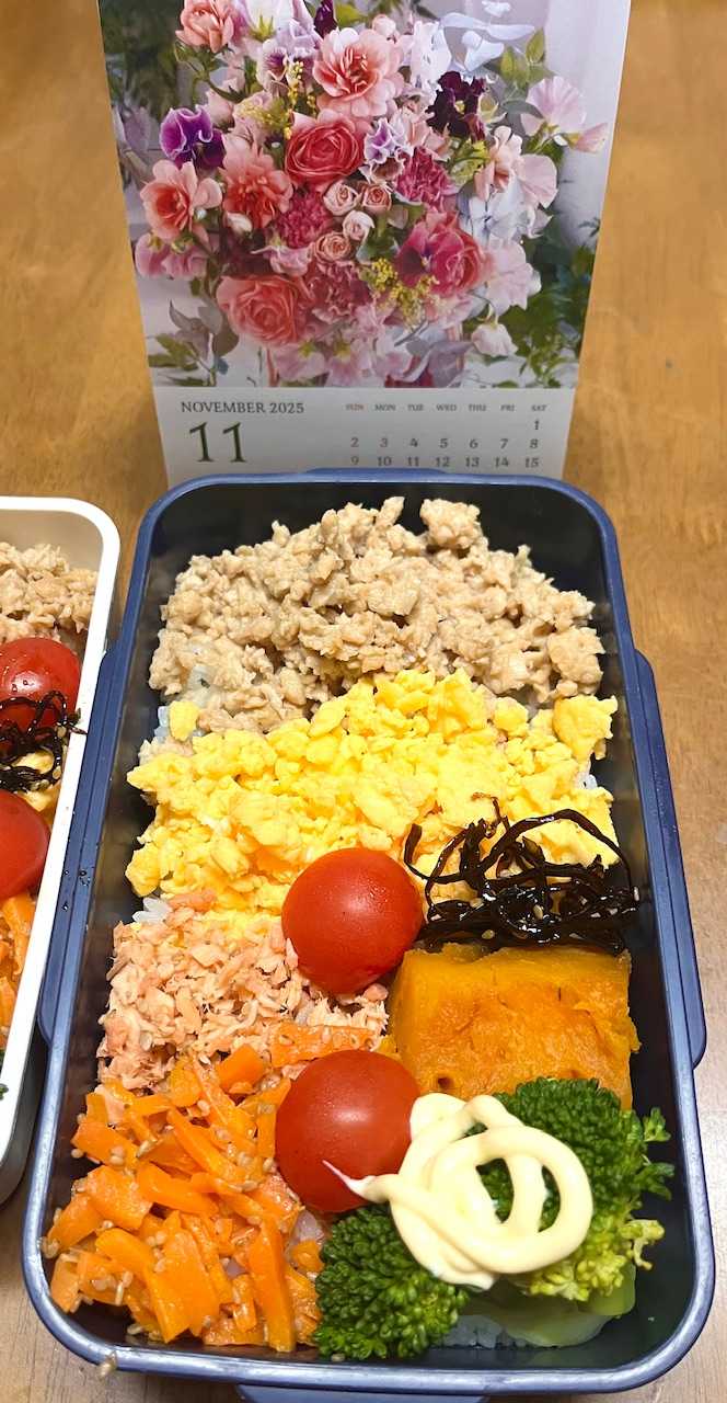 11月4日(火)。🍀彩りそぼろ弁当。11月5日(水)。🍀豚肉焼肉弁当。青森でも市内に熊出没😱💦。前の日、たまたま仕事で行ったところが熊出没地区だった😱。こわーい😢。11月6日(木)。🍀ホワイトソースハンバーグ弁当。11月7日(金)。🍀シーフード焼きそば弁当。なんだか楽天ブログの調子が悪く、週末なかなかブログ開けなくて😱💦。やっと、週明けあたりから開けるようになりました😢。先週のスイーツ🍰。食専館のホイップクリーム買ってみました😋。🌸ミニロールケーキ。 🌸丸ごとバナナ風。🌸3種ミニロールケーキ。スポンジは炊飯器、ケーキモード10分でできちゃいます😋。卵泡だててホットケーキミックス、混ぜて生地は完成します。卵泡だてては焼きの繰り返し。ひたすら枚数焼きます。🌸生クリームカスタードプリン。いつものカスタードプリンレシピにホイップクリームを溶かしてプリン生地に入れて、濃厚カスタードプリンの出来上がり💕。今のマイブーム💕。お弁当の作り置き冷凍おかず作り。🔸ひじき煮。🔸切り干し大根。🔸にんじんきんぴら。🔸小松菜ベーコンソテー。写真にはないけど、🔸かぼちゃとウインナーバターソテー。これ、りんが高校1年生になった時、マイブームだったらよかったのに‥😓💦。ブログが調子悪いのはストレス😥。まぁ、私は自分の日記、覚え書き程度だからいいけど、職業としてる人は今回のトラブルはストレスだろうな😥💦。