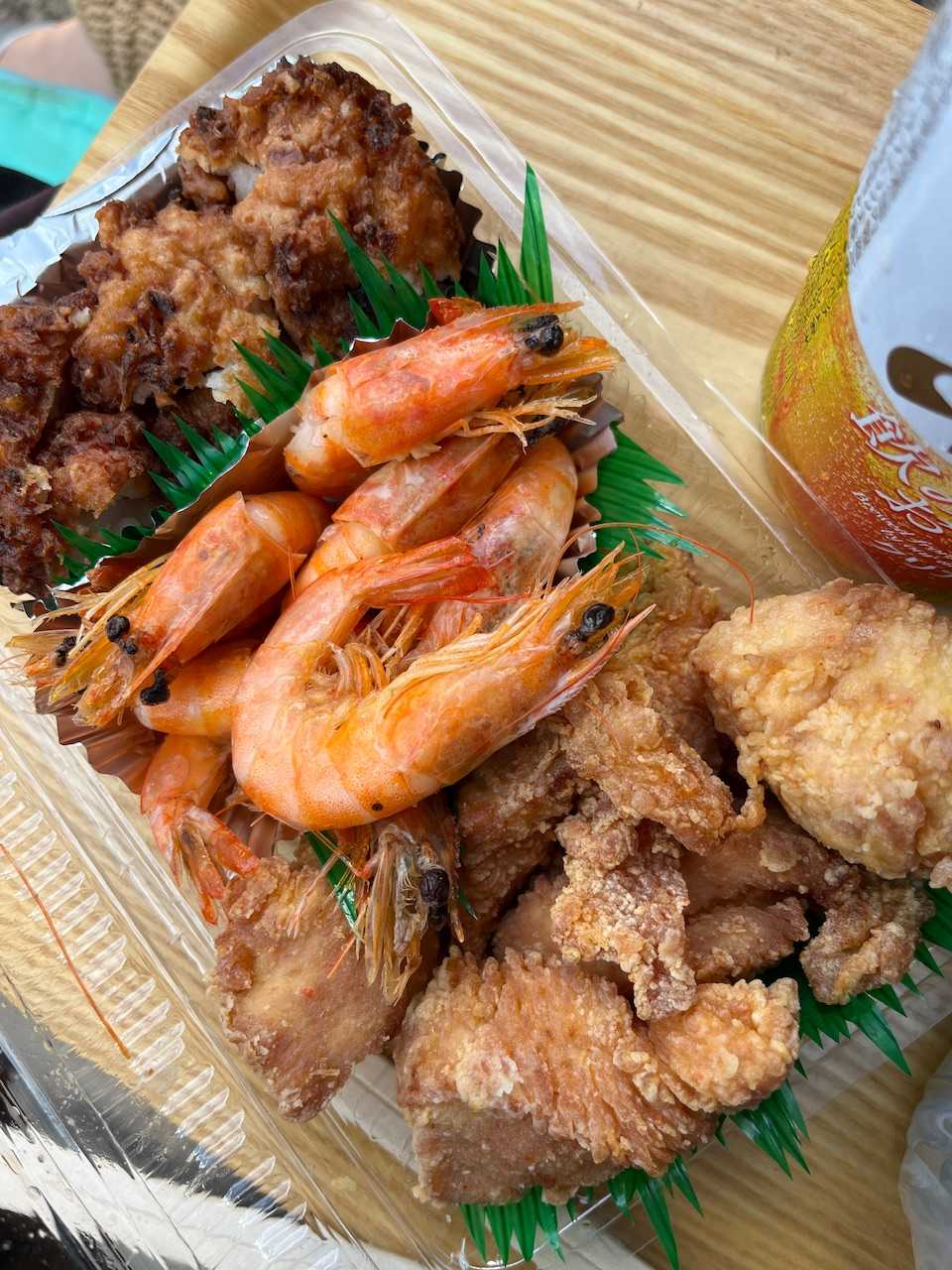 8月2日(土)、青森ねぶた祭りに行って来ました😊。今年は日にちがイマイチ😅。こればかりはしょうがないけど🥲。平日は到底見に行けないから、初日に行ってきました。初日は子どもねぶただし、台数も少ないからちょっと残念だけど😢。まぁ、この日しか行けないからね〜。今年のおつまみ💕。屋台で買うのもいいけど、今年はスーパーのお惣菜で用意してみました😊。🌸イガメンチ🌸エビ唐揚げ🌸賞とったスーパーの唐揚げ💕。🌸きゅうり棒。即席で作りました😊。白だしと寿司酢で簡単に👍。さっぱりしていいよね。きゅうり棒っていいんだけど、なんだかお金払って買う気がしない😱。畑のきゅうり、たくさんあるから。💕ビールです屋台の生ビール🍺買いに行くの面倒だと想像。持参しました👍。正解💕。一緒に行った妹のお手製🌸お稲荷さんと梅巻き。🌸スパイシー手羽元唐揚げ🍗。手作り。ビール、進みます😭。今年の陣地は、新町入り口にしました。一つ目スタート地点近くです。早く祭り雰囲気味わいたいからね💕。早速、かんぱーい😊。親戚が大太鼓で参加✌️。必死に探しました💦。花笠かぶったハネトってなんかいい😊。華やか。ご飯達。(おそらく‥)県の偉い人達。日立の囃子方、カッコいいんだよね〜。迫力あるよねー😱。自分だったら、笛、大太鼓、カネ、どれに参加してみたいかなぁ。カネは無理だろうな(笑)。リズム感、皆無だし。ほんとは毎日でも見に行きたい。やっぱりその場に行くと、じゃわめぐ!。でもハネトで参加したいとは思わないんだよね。体力自信なし。暑さも😱💦。私、跳ねたことないんだよね〜。ってみんなに言うと驚かれます💦。職場の方々みんな高校生の頃は毎日参加してたんだって😅。うちの高校生の坊は‥。受験生なのでお祭り気分じゃないようです💦。