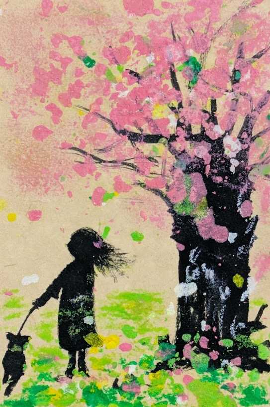 こんにちは。気がつけば9月も今日は16日。こちらでは久しぶりにPCからの更新です。お知らせや”ひとりごと’のときはスマホで書き込みをしております。いつもはHTMLタグを使って書き込みをしているのですが、なんか書き込みにくくなっているので『見たまま編集』モードで書くことにしました。(アメブロのPC 編集モードと同じですわ)舅が特養入所して1年が経ちました。が、舅の在宅介護しているときよりも色々あり自由がきかない・・・そう思うことが本当に多いです。ダブルワークが忙しすぎるのもありますが、ダブルワークをしていたも「お金」がどんどん出ていくというおかしな状況。今日は久しぶりにバイト休みで在宅仕事も休み。出かける予定はないので家の掃除を少ししていました。明日から在宅仕事があり、バイトは明後日からで2日出勤の1日休みからの6連勤となります。(10.11月と休まないといけない日が多くなるので今のうちにやらなきゃ…って感じです)・゚゚・*:.。..。.:*・゚゚・*:.。. .。.:*・゚゚・現在、各公募展等に出展していた作品を紹介しています。本日紹介する作品はこちらです。『Spring tree』(2025・3)この作品は「ポストカード展 Vol.2」に出展した作品です。クレヨンアートの「四季の木」シリーズです。人物を描くのが本当に苦手ですが、シルエットになるとまた変に難しさがありますね。バランスをとるのが本当に上手くできず、少し今回も自分の中では大変でした。犬の散歩をしている女性を描きましたよ。春といえば「桜」ですね。゜.+ε(・ω・`*)з゜+.゜ε(・ω・`*)з゜+.゜ε(・ω・`*)з゜+.゜令和5年度 与謝野町文化祭(展示部門)の様子令和6年度 与謝野町文化祭(展示部門)の様子゜.+ε(・ω・`*)з゜+.゜ε(・ω・`*)з゜+.゜ε(・ω・`*)з゜+.゜*:・☆・:*。皆さんに「素適にHappy!」が訪れますように。*:・☆・:**:・★・:*★*:・★・:*★*:・★・:*私の旧メインブログ『しょこらのオレンジすくえあ』内の☆しょこらの「書ぎゃらりー」☆では、「書道作品(課題もの・オリジナル作品)」を展示しておりますので、課題作品や過去の作品を見てみたい方は是非、見てやってください。m(_"_)mにほんブログ村