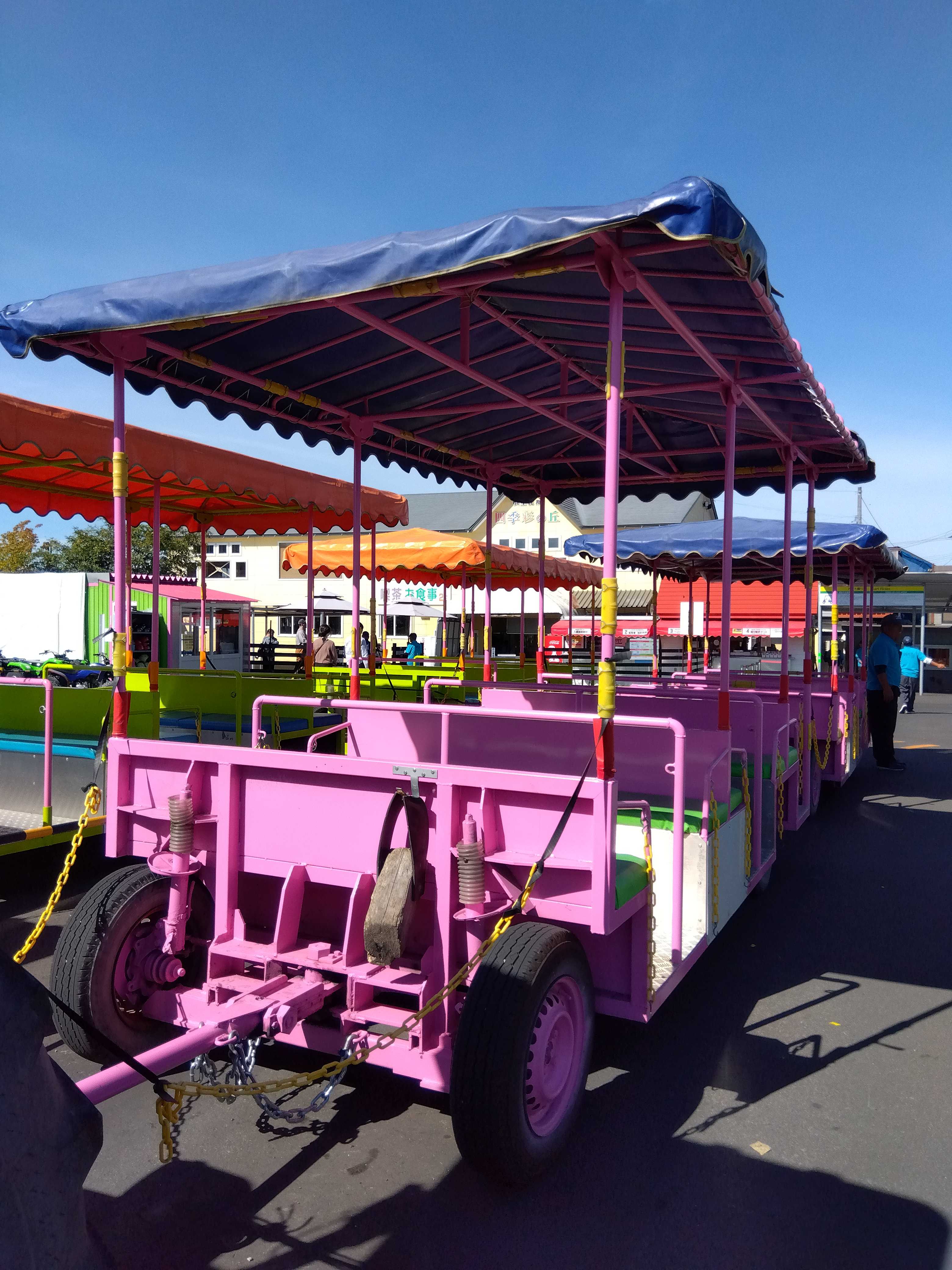 私とお兄ちゃんが乗ったトラクター🚜バス(ノロッコ号)です(正面から撮りました)