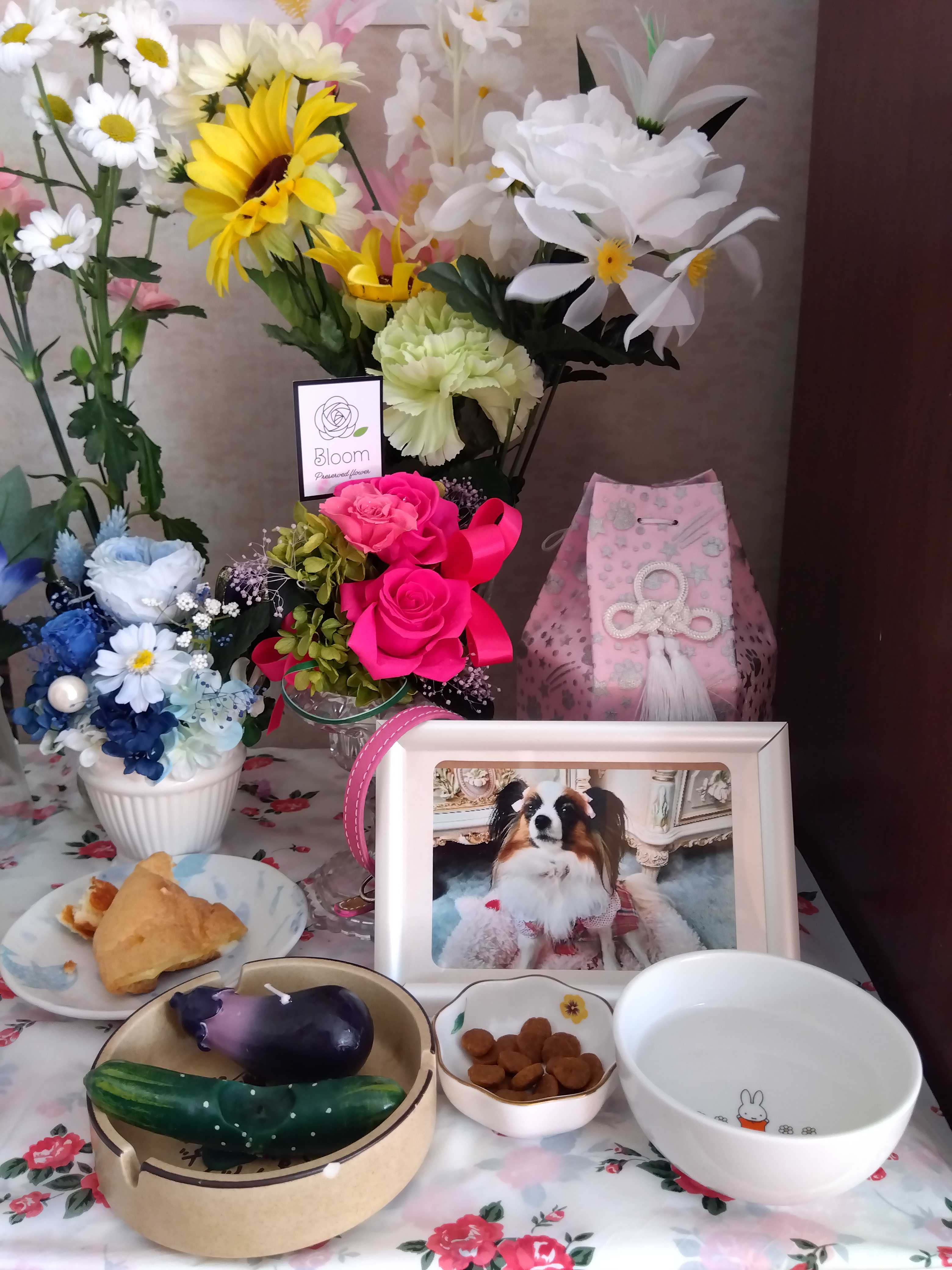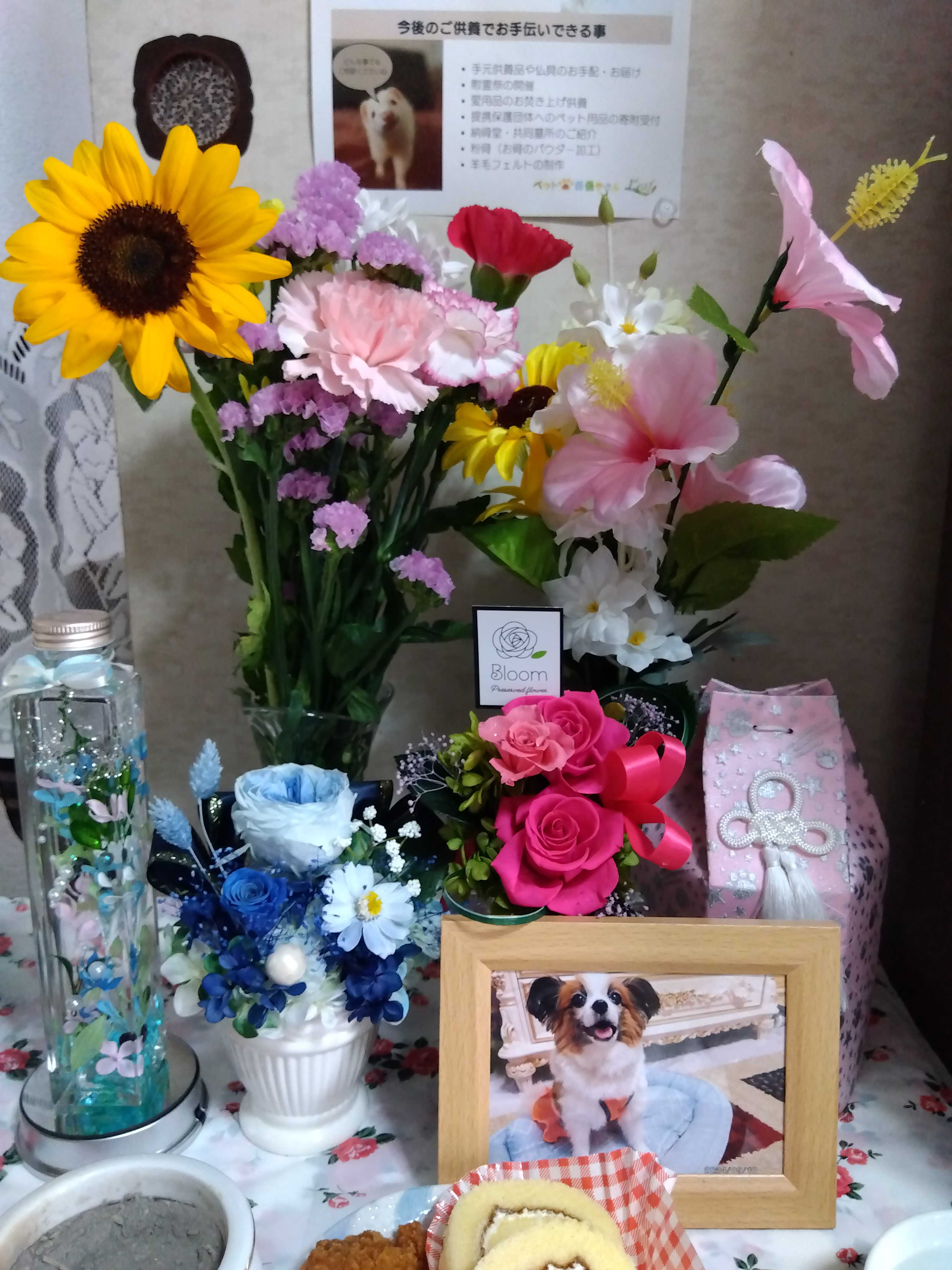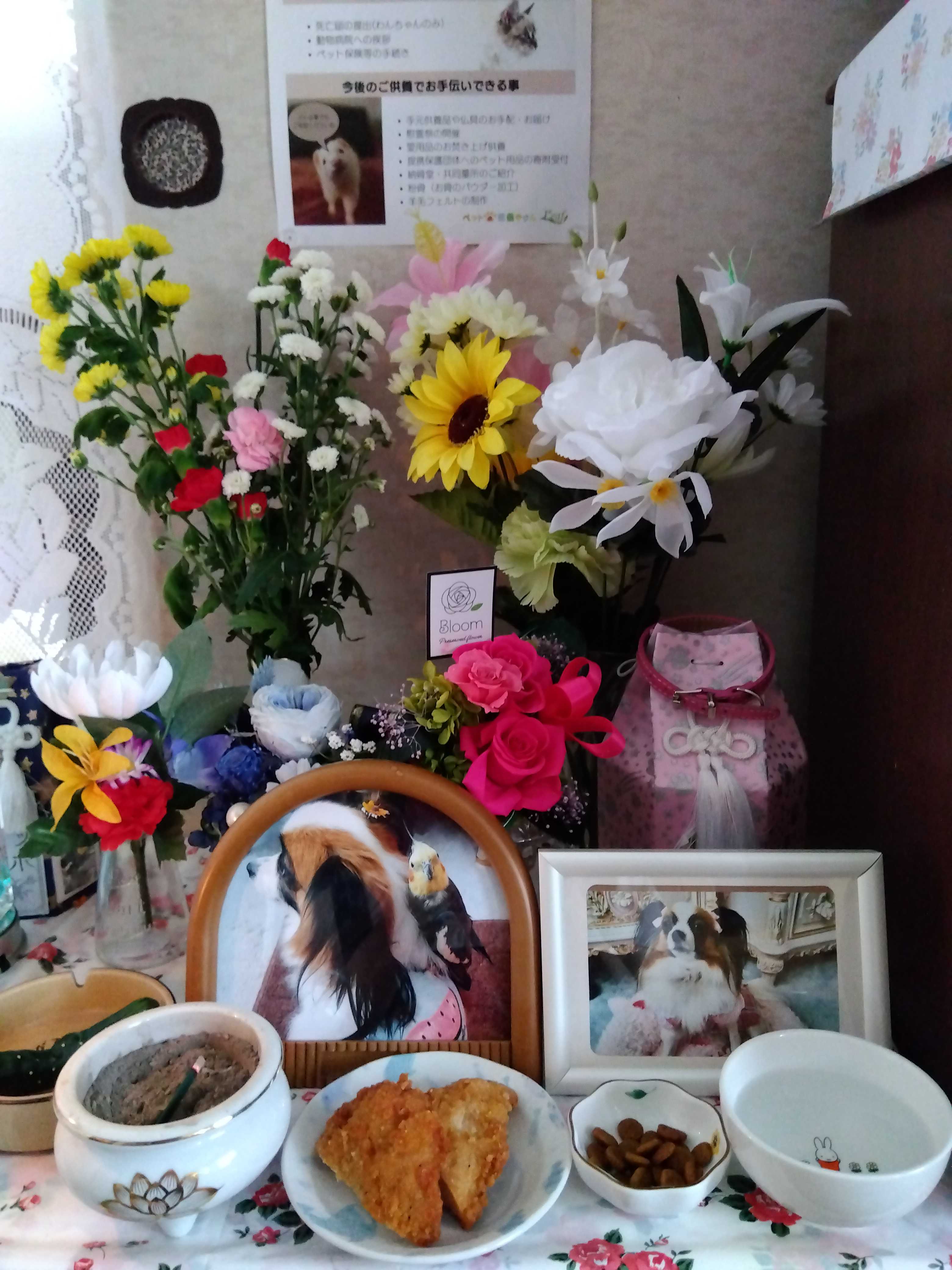 一ヶ月前の6月27日の日だったね ここなが急遽旅立つたのは・・・・・ここなが最後にママを呼んだのは10時半過ぎだったんだねそして最後に力尽きた苦しい鳴き声は11時過ぎだったんだねポッポの月命日の17日に おばちゃまから聞いて全てわかったよここなのママとして全てを知らなくてはといけないと思ったから思い切って聞いてみた 凄く苦しかったよね何度も何度も繰り返して同じ事を言ってきたから聞かなければ良かったと思った(一度で良いのにね)どんなに心細かっか事かと思う 胸が張り裂けそうだよ 看取れなくてゴメンね今日が初めての月命日おくりびとさんは言ってた 49日まで魂はわが家に居るってこれからも、どんなに月日が経っても涙がこぼれるけれど虹の橋の高原でママを待っていてくれるよね?なかなか悲しみは消えないけれど楽しい思い出を力にしていきたいです!6月5日に編集したshorts動画 また会おうね【限定公開】https://youtube.com/shorts/s3cV7NCYHws?si=KHYMAtuJbaOeuQ8Tそして今日編集したshorts動画 初めての月命日【限定公開】https://youtube.com/shorts/87AYdJhD0ck?si=3lx4hfOelPyy7dQvペットはカラフルを色合いのお花を選んでも構わないということで季節のお花や、ここなをイメージした明るい、お花を選びました(左奥が生花)