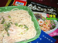 食べたものをレビューします。メーカー:日本製粉株式会社商品名:オーマイプレミアム「たらこといか スパゲッティ」価格 315円(税込)お気に入り度(5段階評価):総合★★★お得感★★(買う店次第。半額158円なら、かなりお得。3割でまずまず)味★★★ (ソース★★★ 具★★★)(在り来たりな味ながらも、飽きのこない味)手軽さ★★★★(袋から出して、紙トレーごと電子レンジへ との手軽さなので)1人前(290g)428kcal調理時間の目安:500W 4分30秒、600W 4分「ほぐした焼きたらことやわらかい輪切りイカをのせ、青ネギとごまで彩りよく具沢山に仕上げました。」(パッケージ表紙より)感想 オーマイプレミアムのシリーズです。きざみのりが別袋で付いています。・味について プレミアムというほどの味とは思わなかったです。でも在り来たりな味ながらも、飽きのこない味なので、食べる頻度は、このシーリズの中では1番です。 たらこだけでなく、白ゴマ、ネギ、きざみのりと入っています。 あとイカが、同シリーズペスカトーレと同じで、食感がどことなく冷凍だったような感じがするので、こういうものって思って食べたら、そんなには気にならないですが、自分でしたのと違う感じがします。レンジで加熱後の写真です。その他について冷凍食品、冷凍ゆでスパゲッティ(調理済)内容量:280g原材料配合割合(仕込時):イカ 3%、焼きたらこ 2.6%賞味期限 12ヶ月アレルギー物質:小麦販売者:日本製粉株式会社 東京都渋谷区千駄ヶ谷5-27-5メーカー→NIPPNホームページ:日本製粉株式会社商品紹介ページ→オーマイ プレミアム たらこといかスパゲッティ関連記事→魚介とトマト ペスカトーレ スパゲッティ(オーマイプレミアム、日本製粉株式会社) お気に入り度:★★★ 家でも十分に出せる味とは思いますが、たらこを買ってほぐすよりも、そのままご飯と食べたいので、結局出来合いのソースを買うなら、どっちが良いのか。 スパゲティ茹でるのも今は、値段は高い気するけど、お湯を入れるだけ(左 1,260円)のや、名前そのまんまの、レンジでつくる スパゲッティ(右 378 円)とかあるので、茹でる手間もあまり無いです。 右のレンジでつくるのを持っていますが、加熱時間の調整で、アルデンテっぽくもできるので、結構便利で、利用しています。これと同型のを100円均一で見掛けたことがあります。材質などは落ちた感じですが、茹でることは十分にできました。