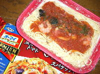 食べたものをレビューします。メーカー:日本製粉株式会社商品名:オーマイプレミアム「魚介とトマト ペスカトーレ スパゲッティ」価格 315円(税込)お気に入り度(5段階評価):総合★★★お得感★★(買う店次第。半額158円なら、かなりお得。3割でまずまず)味★★★ (ソース★★★ 具★★)(結構本格的なお味。もう少し具にボリュームが欲しい)手軽さ★★★★(袋から出して、紙トレーごと電子レンジへ との手軽さなので)1人前(290g)388kcal調理時間の目安:500W 6分、600W 5分30秒「魚介の旨みと完熟トマトの風味豊かな味わい」(パッケージ表紙より)感想 オーマイプレミアムのシリーズです。電子レンジで温めるだけという手軽さと、結構美味しいので、度々食べています。・味について メインの具は、イカ、海老、あさり、ナスビ。ただ写真ほどは入っていない感じです。それか写真に写っているのが全てというぐらいかも。もう少し欲しいと思いました。あと揚げなすが美味しかったです。 ソースは、トマトベース、白ワイン仕立てで、ニンニクの味が利いています。高級店とまでは流石にいかないですが、魚介の旨みが出てて、結構本格的な味でした。 お皿に盛り付けて、自分で作ったと言っても誤魔化せそう。だけど具の一つ、イカが、食感などどことなく冷凍だったような感じがするので、ばれそうな気もします。 いつも割引品を買うので、150~200円前後なら、家で一人前だけをわざわざ作ることを思えば、かなり楽で、気軽です。紙トレイ(ラップを付けたまま)を、レンジで加熱後の写真です。その他について冷凍食品、冷凍ゆでスパゲッティ(調理済)内容量:290g原材料配合割合(仕込時):イカ 2%、えび 2%、あさり 1%、白ワイン 0.3%賞味期限 12ヶ月アレルギー物質:卵・乳・小麦販売者:日本製粉株式会社 東京都渋谷区千駄ヶ谷5-27-5メーカー→NIPPNホームページ:日本製粉株式会社商品紹介ページ→オーマイ プレミアム 魚介とトマト ペスカトーレスパゲッティ ペスカトーレのレシピを見ると(参考→ペスカトーレ-こうちゃんの簡単料理レシピ)、具材は海老・ホタテ・貝類と高くなりそうだけど、作り方はそんなに難しくはなさそう。ニンニク炒めて、白ワイン入れて、具を入れて、トマトを入れて、味付け。ただ、海老などの処理が面倒そう。料理は手間暇とは良く言ったものですね。でもかなり美味しそうです。一度、家でも作ってみたいです。