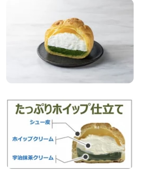 宇治抹茶クリームの2層仕立てになったシュークリームです。