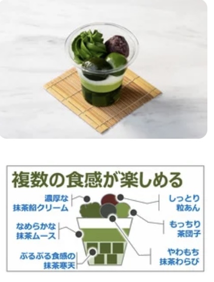 さまざまな表情の抹茶を味わえる和風パフェです。