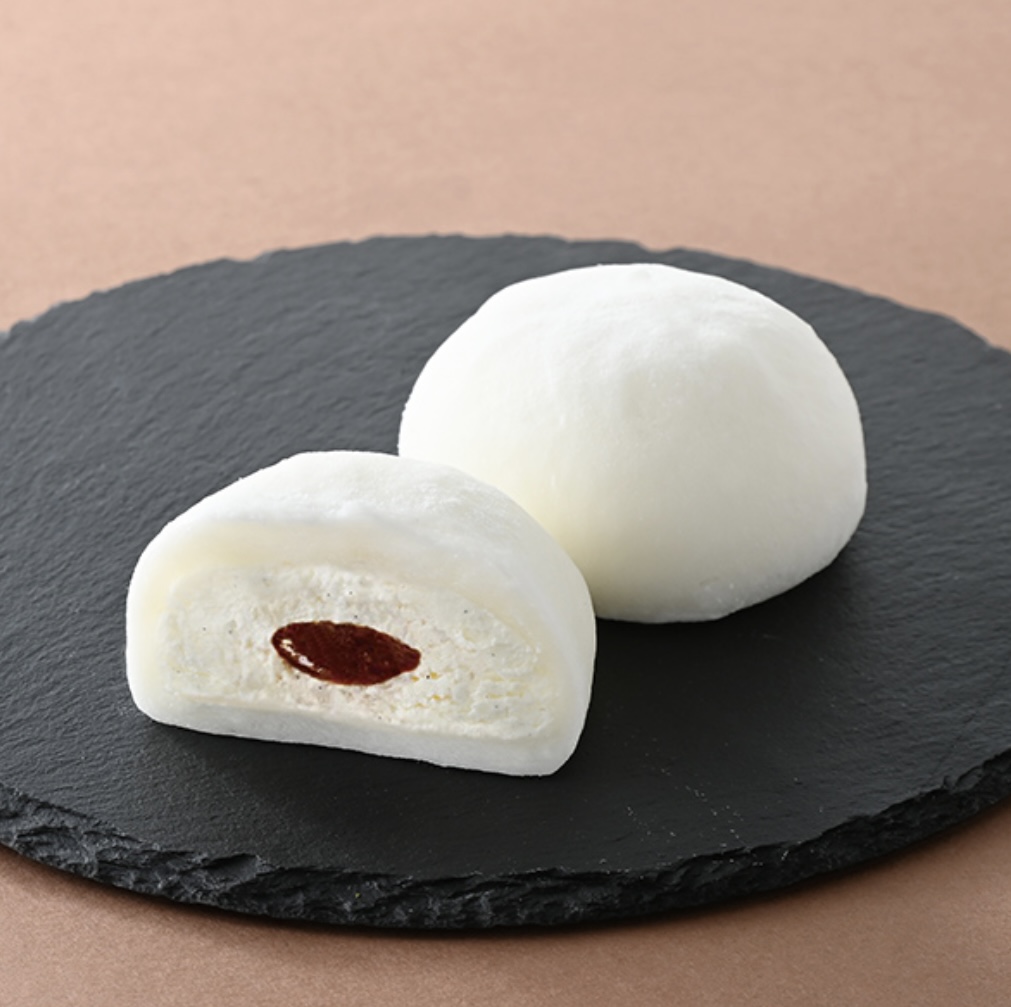 ふわもち食感の大福生地でバニラホイップとキャラメルソースを包み込んだ大福です。