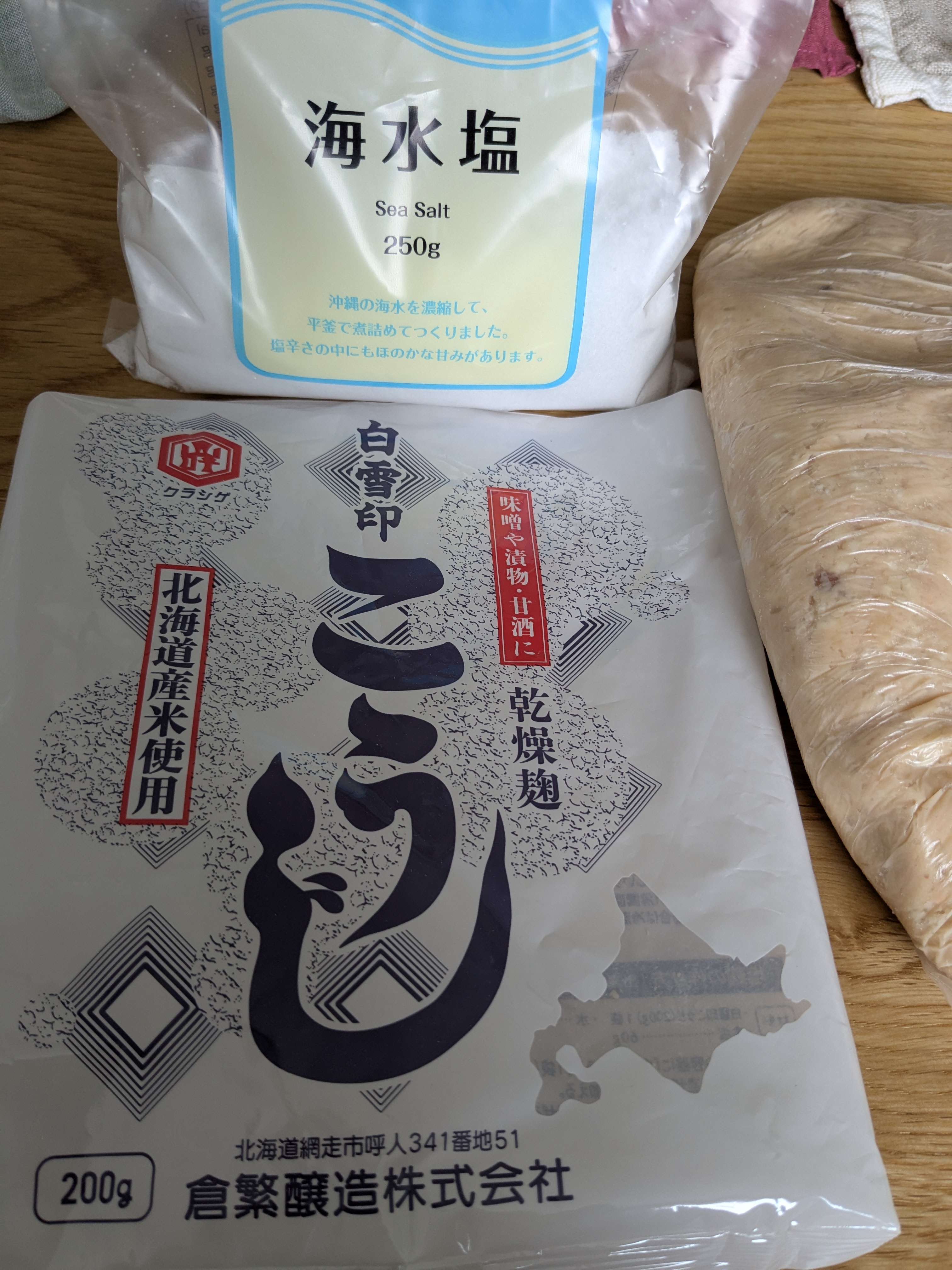 材料は乾燥大豆と麹をそれぞれ200グラム